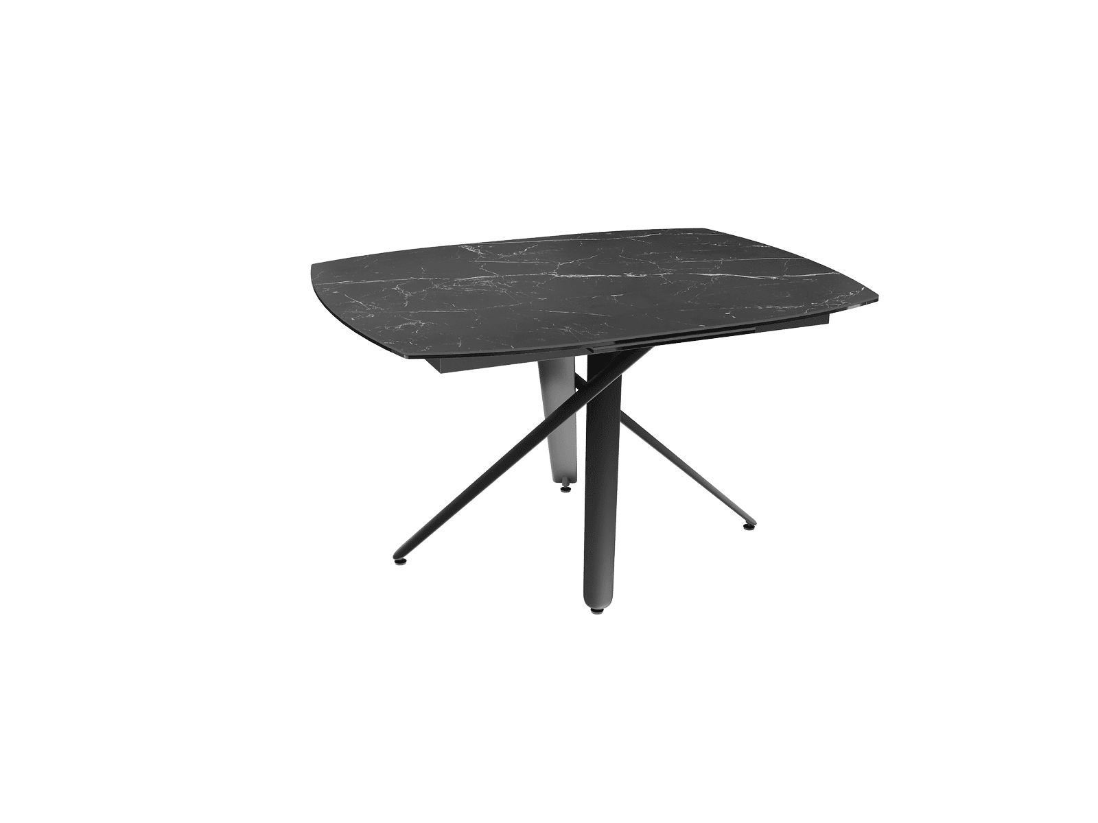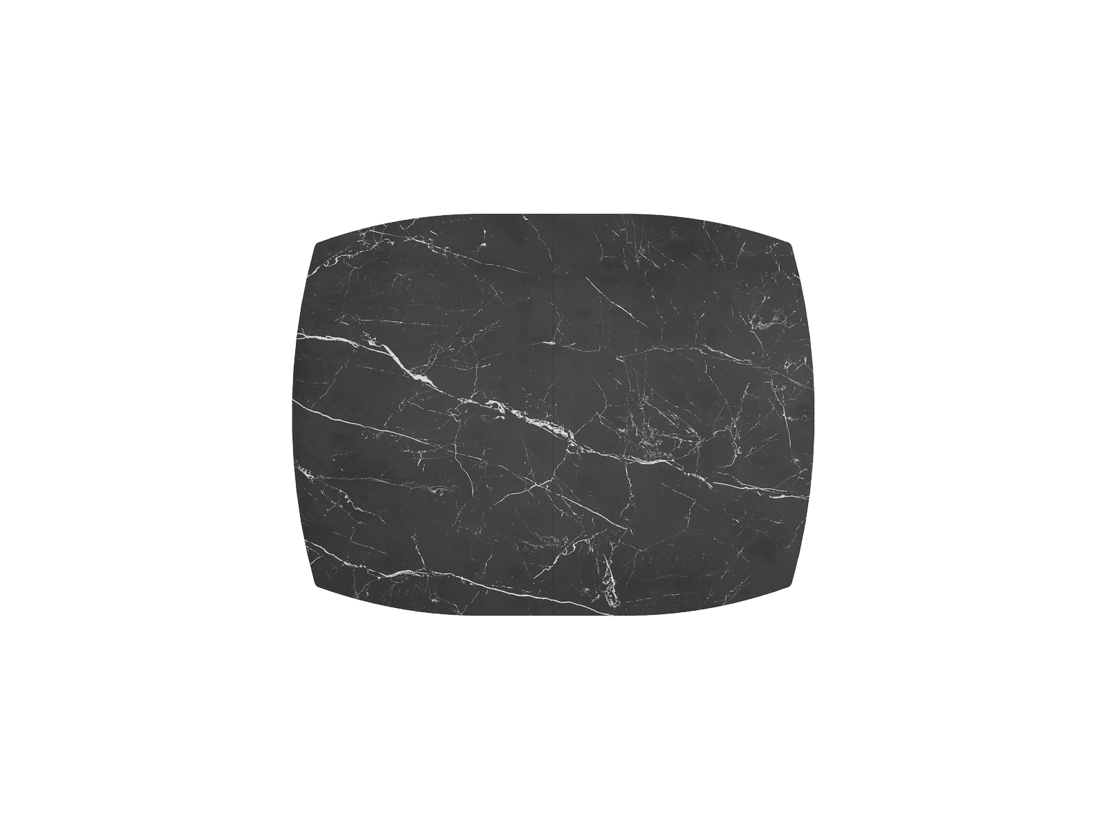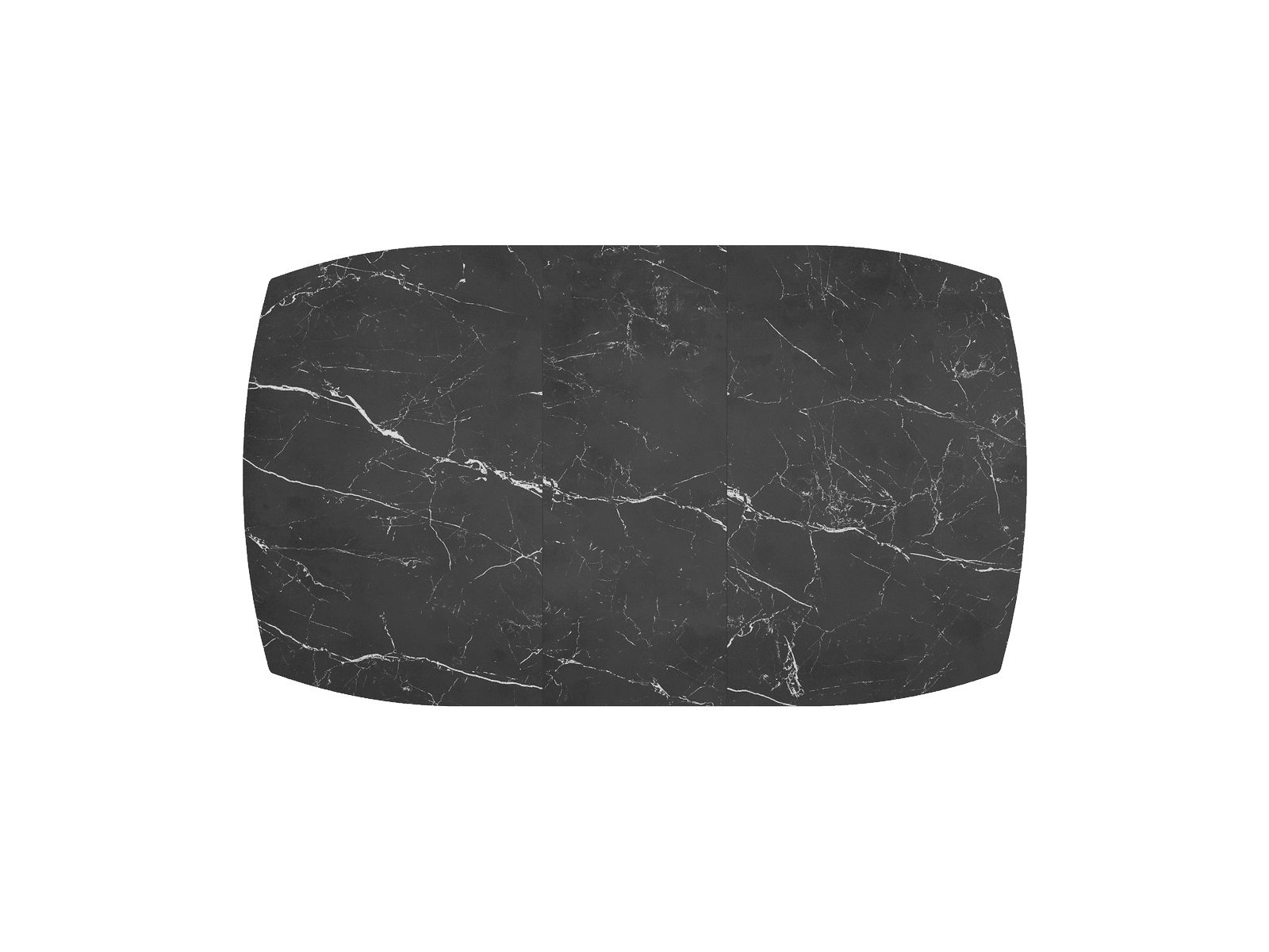 Dimensiones y detalles Peso neto : 133,5 Kg Color : Mármol Marquina Dimensiones : 130 x 100 x 76 cm Dimensiones abiertas : 170 x 100 x 76 cm Altura : 76 cm Ancho : 100 cm Largo : 130 cm Base : Acero lacado negro mate Superficie : Cerámica de 6 mm pegada sobre vidrio de 8 mm