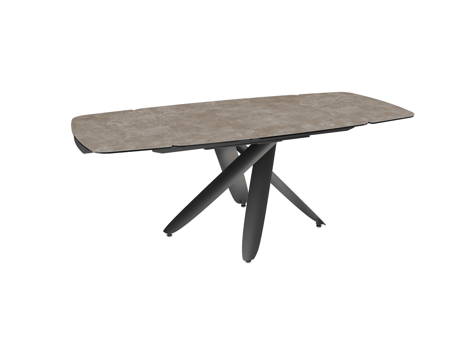 Dimensiones y detalles Peso neto : 113 Kg Color : Arcilla Dimensiones : 130/200 x 90 x 76 cm Dimensiones cerrado : 130 x 90 x 76 cm Dimensiones abiertas : 200 x 90 x 76 cm Número de comensales : 6-8 personas Base : Acero lacado negro mate Superficie : Cerámica de 3 mm pegada sobre vidrio de 8 mm Extensión