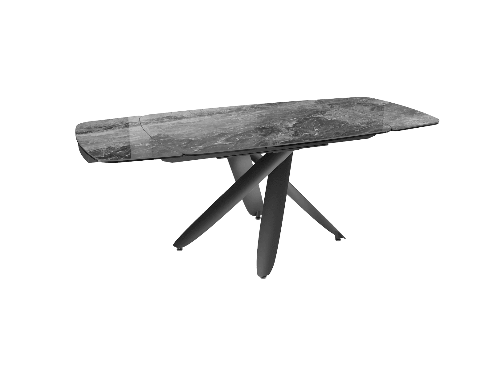 Dimensiones y detalles Peso neto : 113 Kg Color : Eramosa Dimensiones : 130/200 x 90 x 76 cm Dimensiones cerrado : 130 x 90 x 76 cm Dimensiones abiertas : 200 x 90 x 76 cm Número de comensales : 6-8 personas Base : Acero lacado negro mate Superficie : Cerámica de 6 mm pegada sobre vidrio de 8 mm Extensión