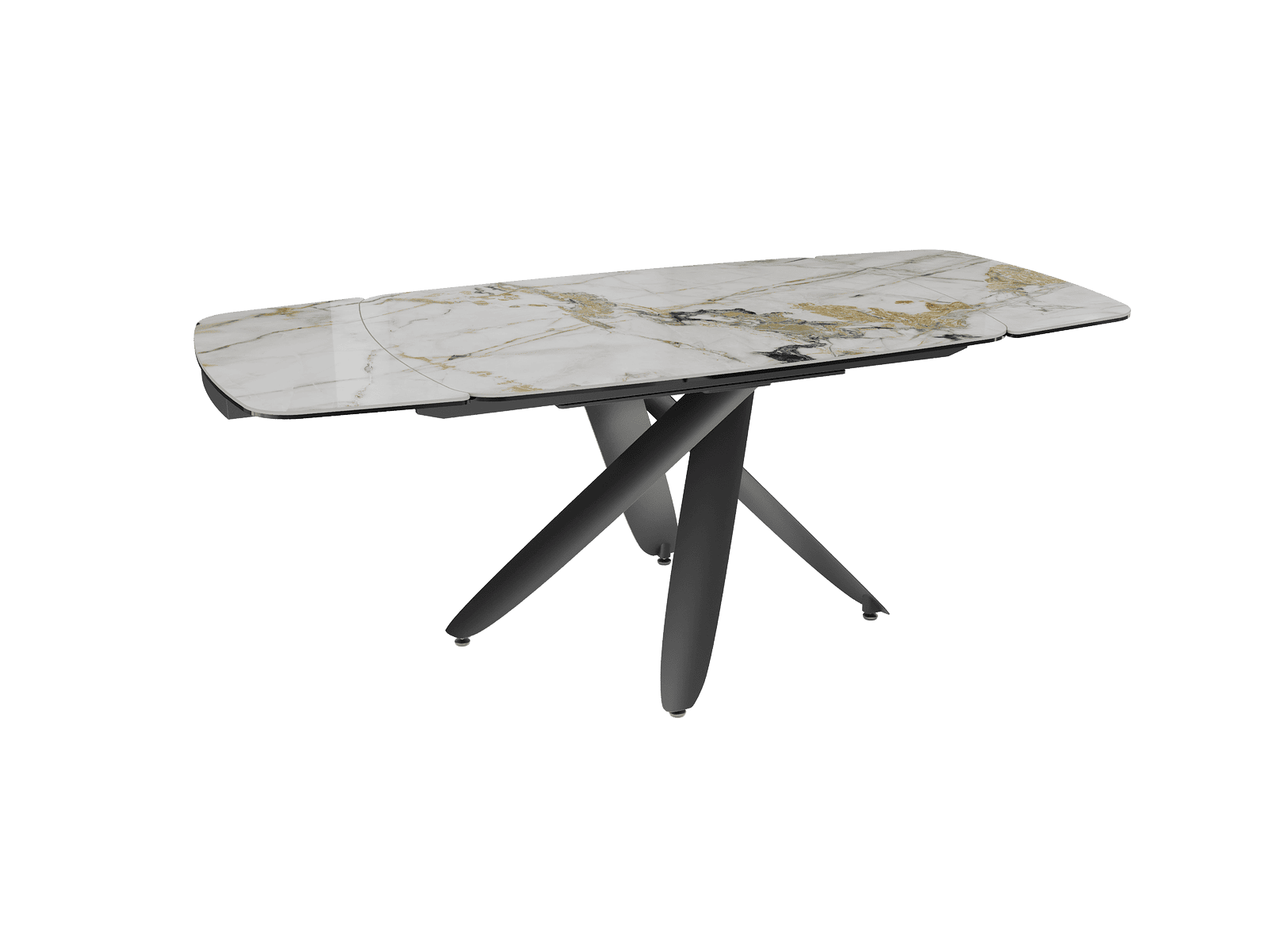 Dimensiones y detalles Peso neto : 113 Kg Color : Mármol Doro Dimensiones : 130/200 x 90 x 76 cm Dimensiones cerrado : 130 x 90 x 76 cm Dimensiones abiertas : 200 x 90 x 76 cm Número de comensales : 6-8 personas Base : Acero lacado negro mate Superficie : Cerámica de 6 mm pegada sobre vidrio de 8 mm Extensión