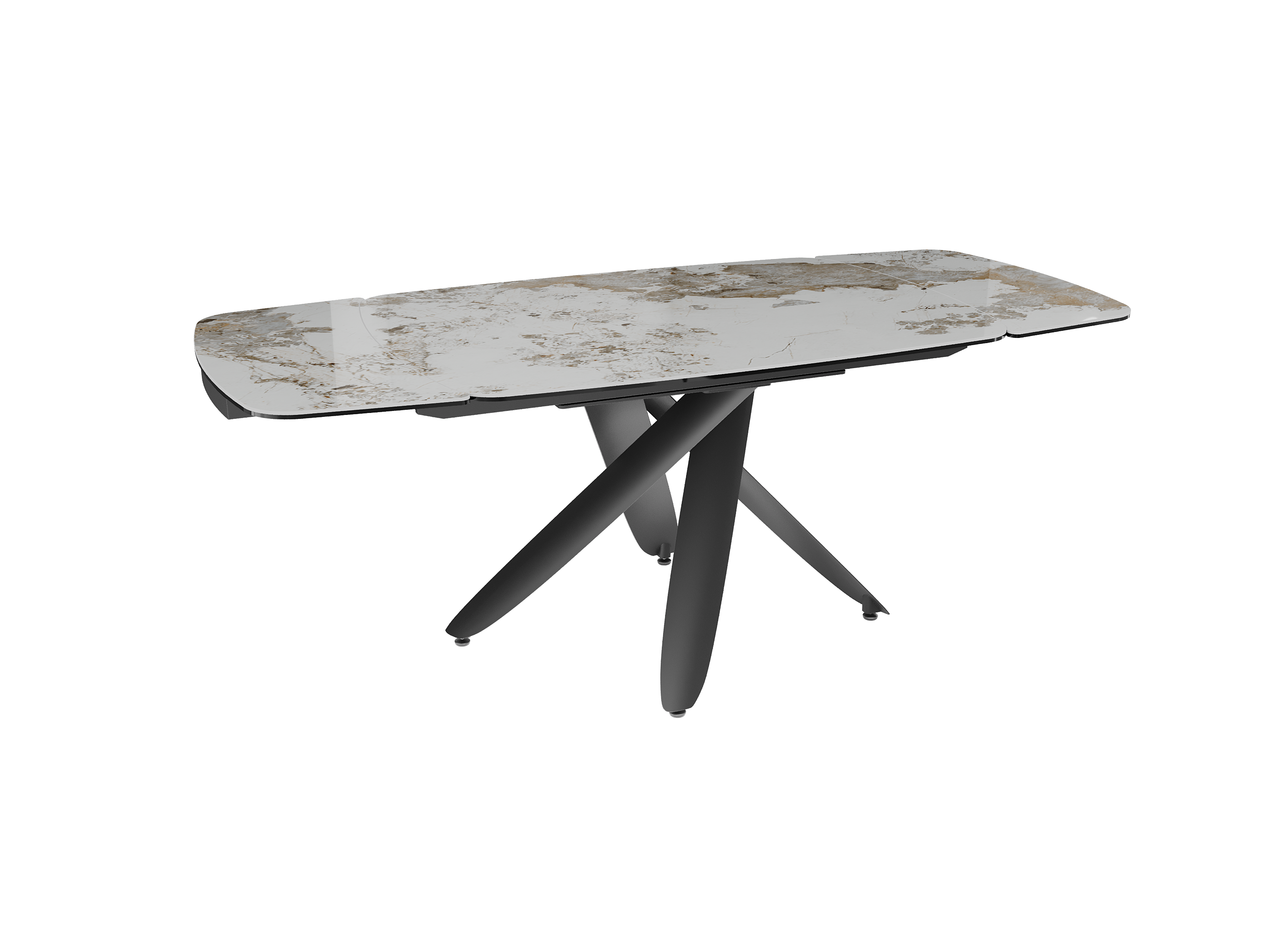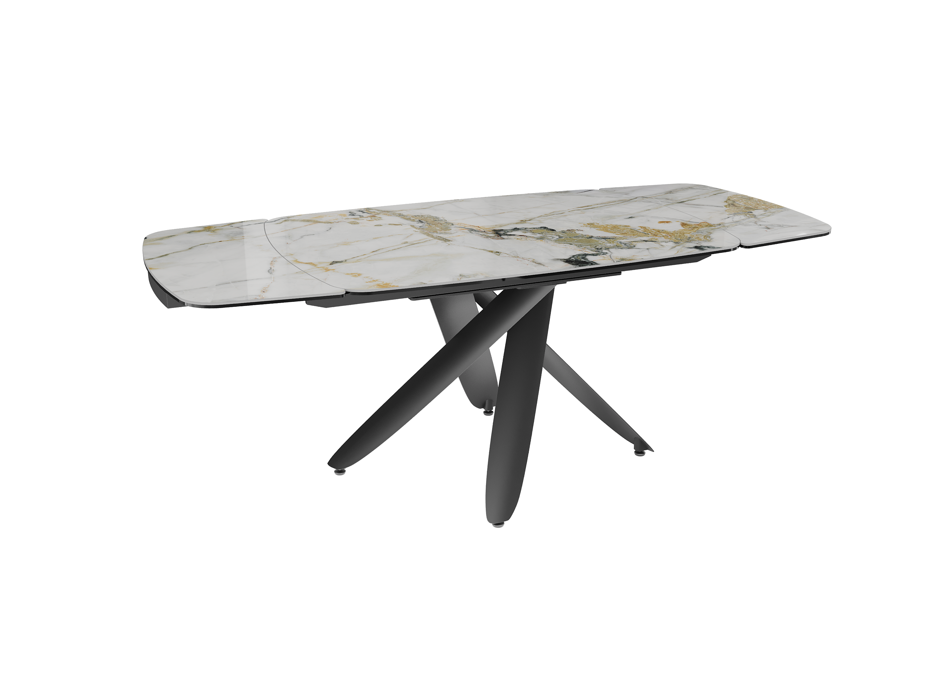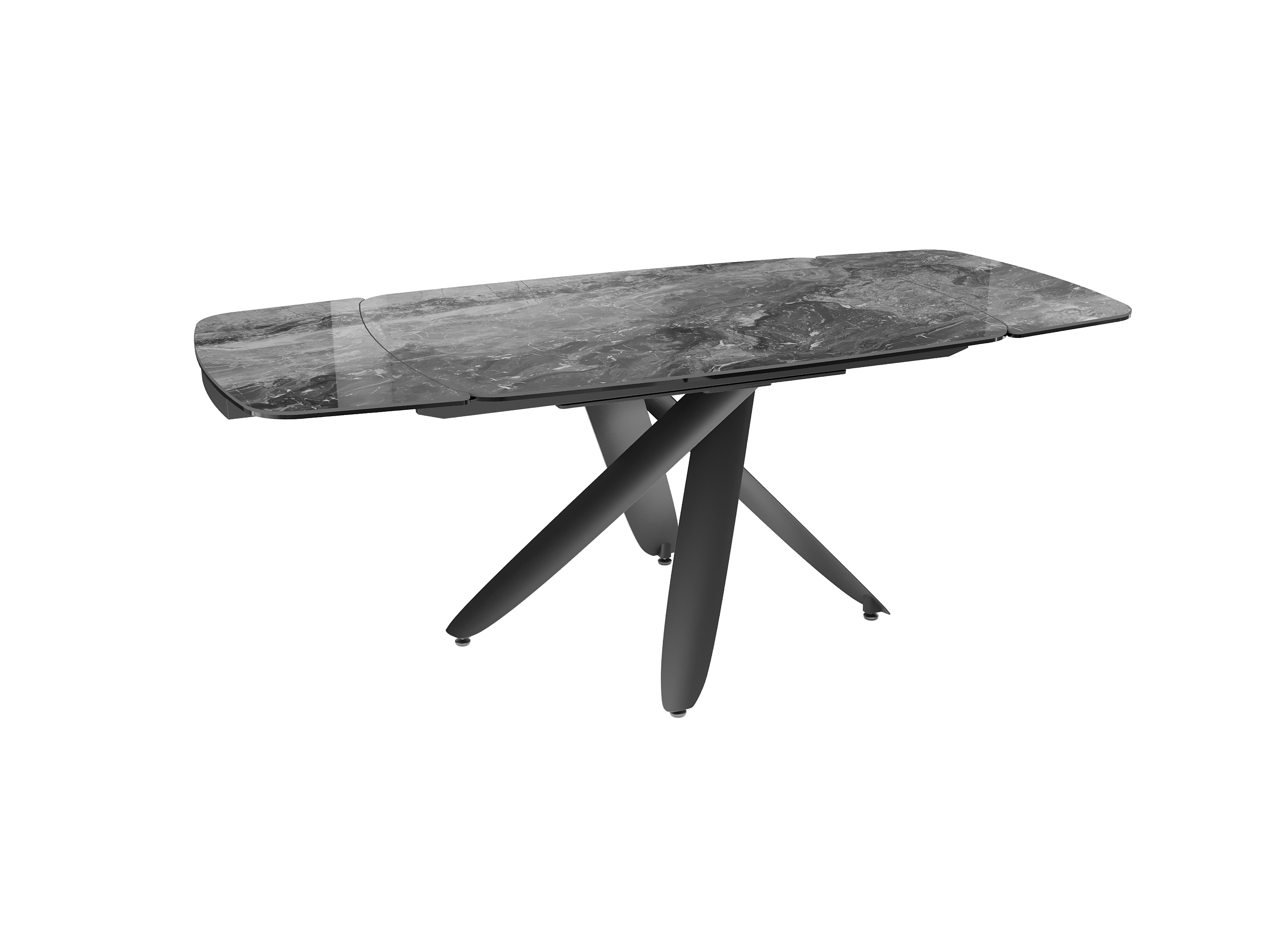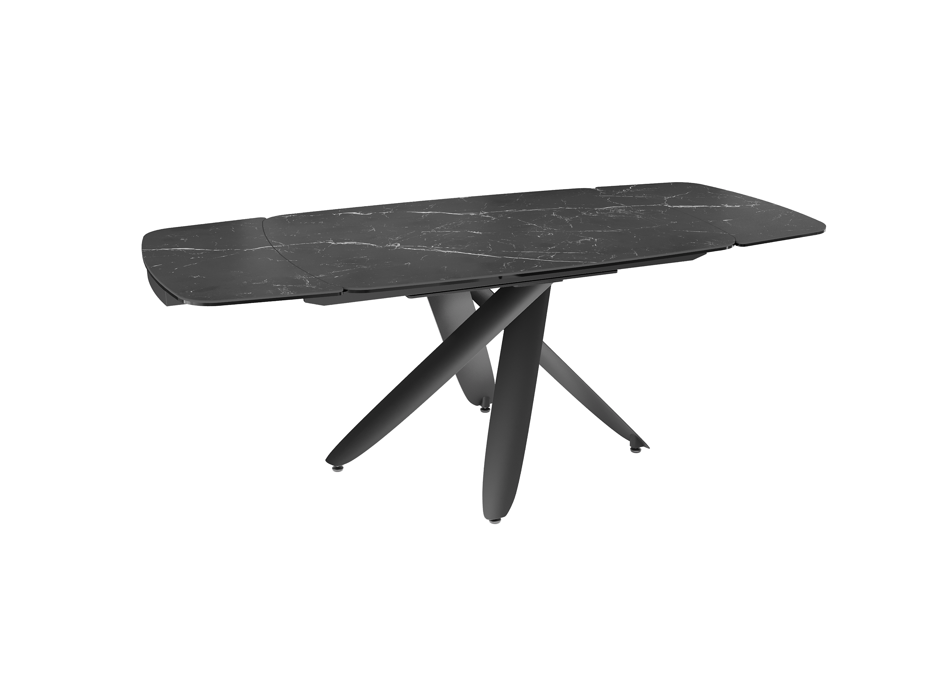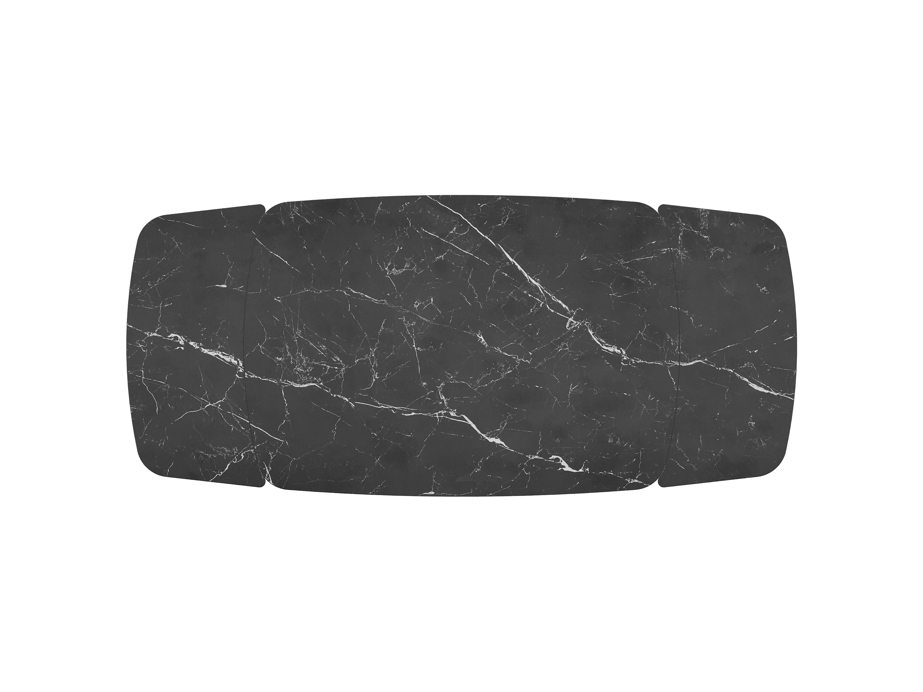 Dimensiones y detalles Peso neto : 113 Kg Color : Mármol Fiorentino Dimensiones : 130/200 x 90 x 76 cm Dimensiones cerrado : 130 x 90 x 76 cm Dimensiones abiertas : 200 x 90 x 76 cm Número de comensales : 6-8 personas Base : Acero lacado negro mate Superficie : Cerámica de 6 mm pegada sobre vidrio de 8 mm Extensión