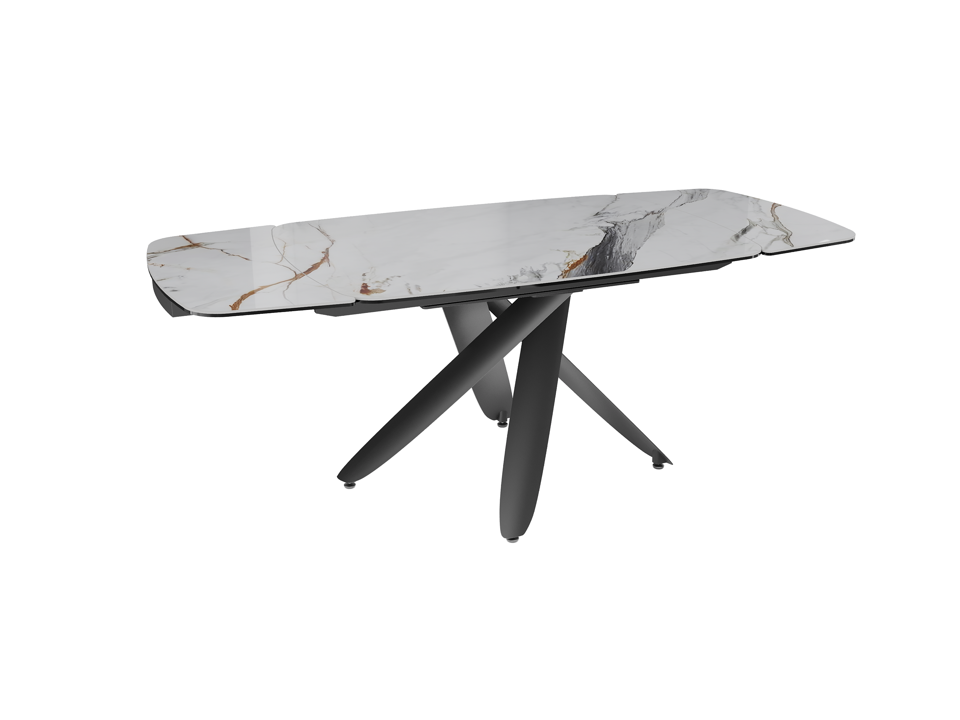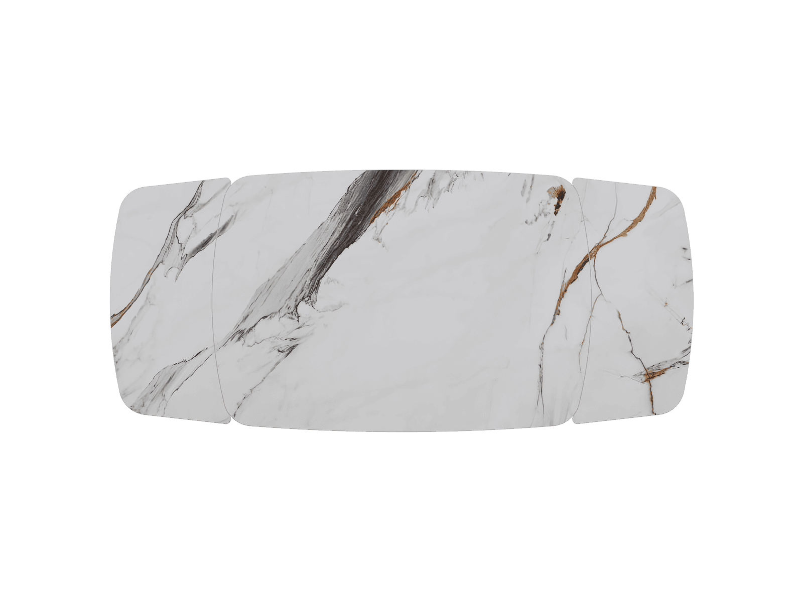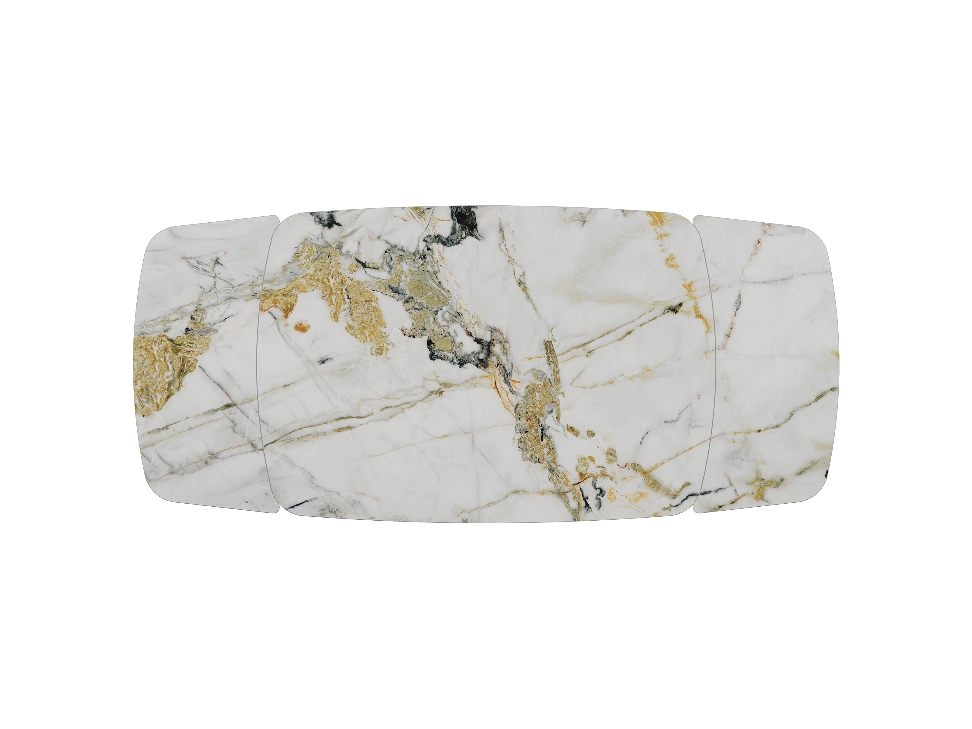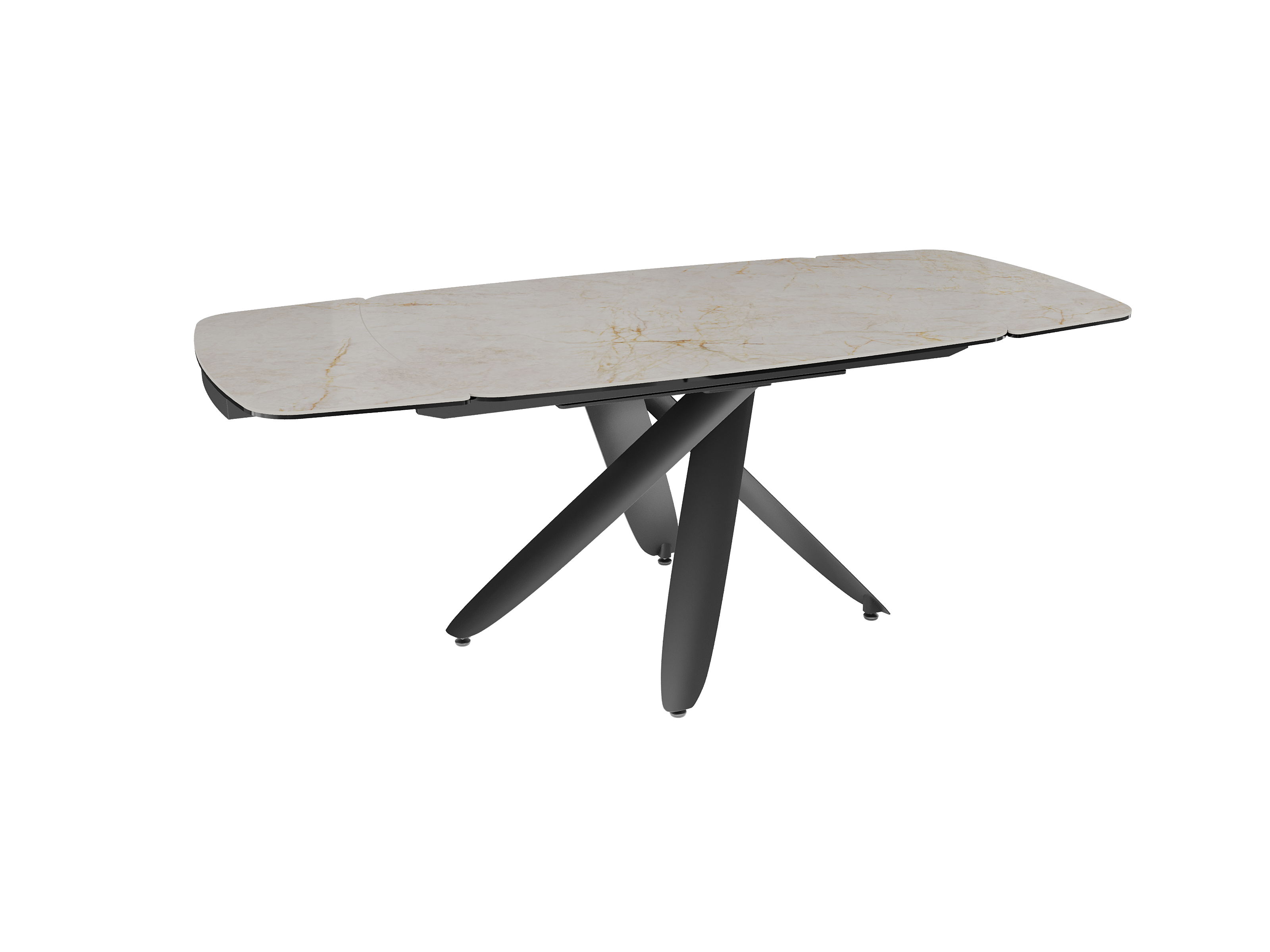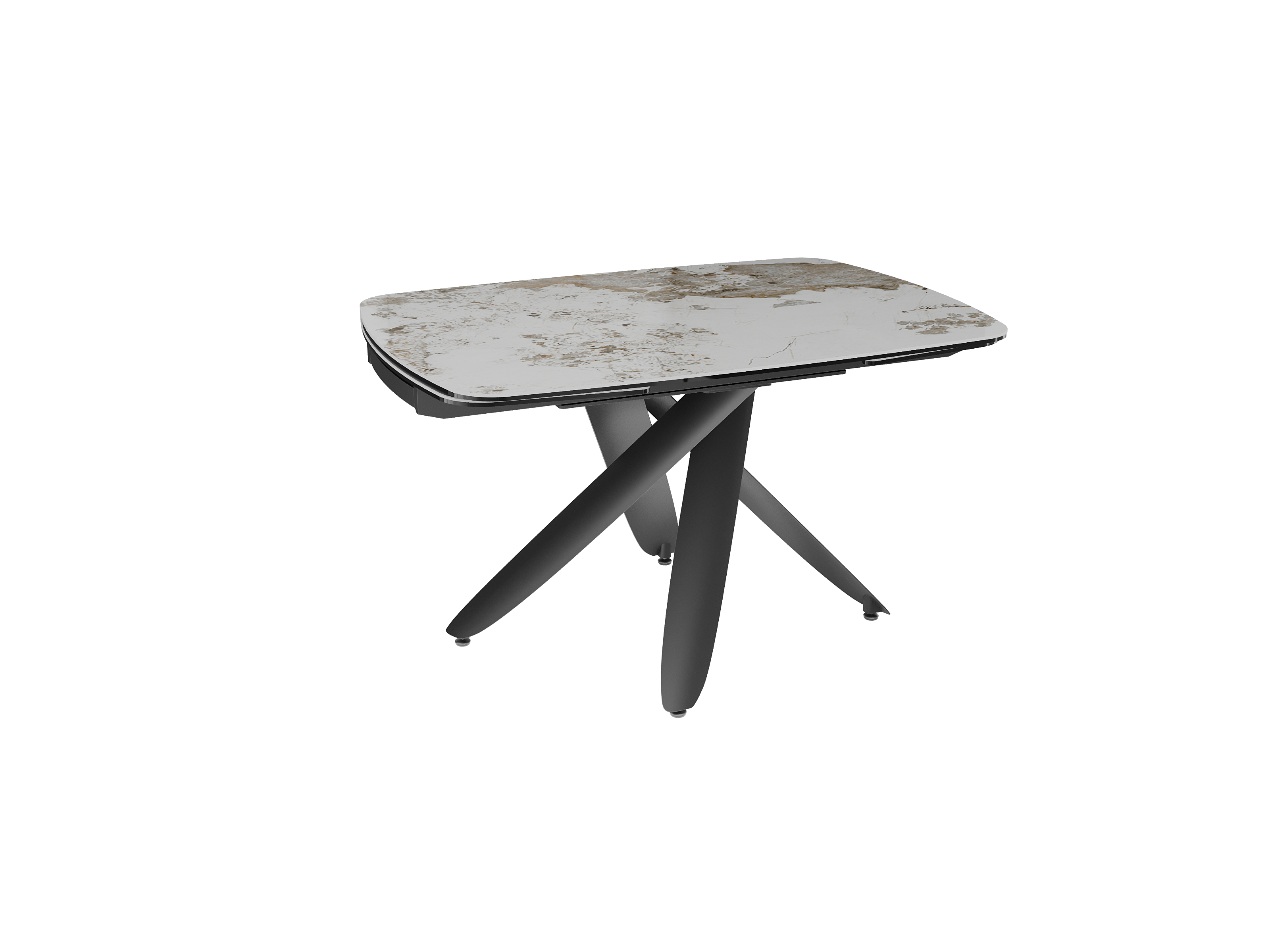 Dimensiones y detalles Peso neto : 113 Kg Color : Mármol Fiorentino Dimensiones : 130/200 x 90 x 76 cm Dimensiones cerrado : 130 x 90 x 76 cm Dimensiones abiertas : 200 x 90 x 76 cm Número de comensales : 6-8 personas Base : Acero lacado negro mate Superficie : Cerámica de 6 mm pegada sobre vidrio de 8 mm Extensión