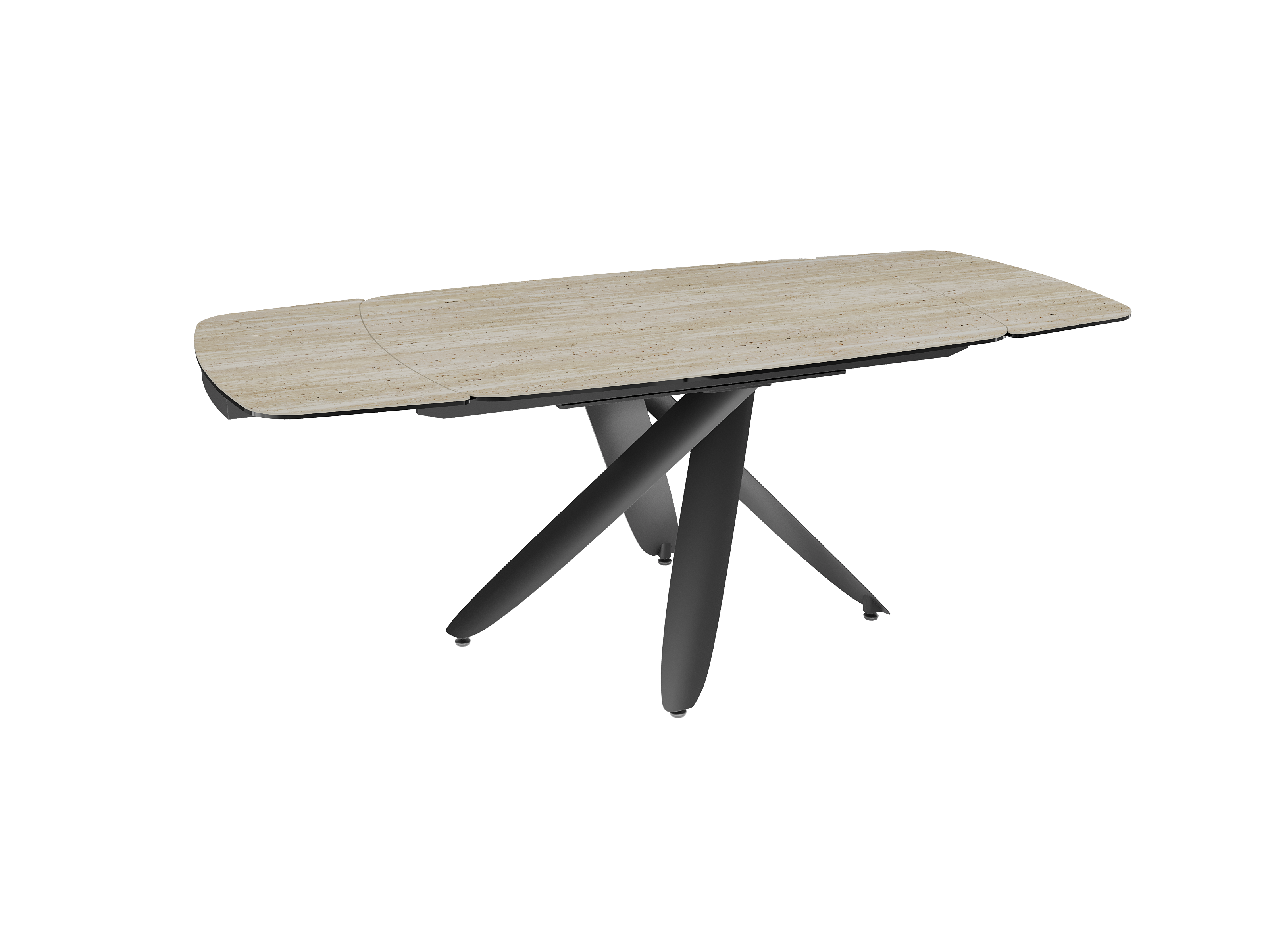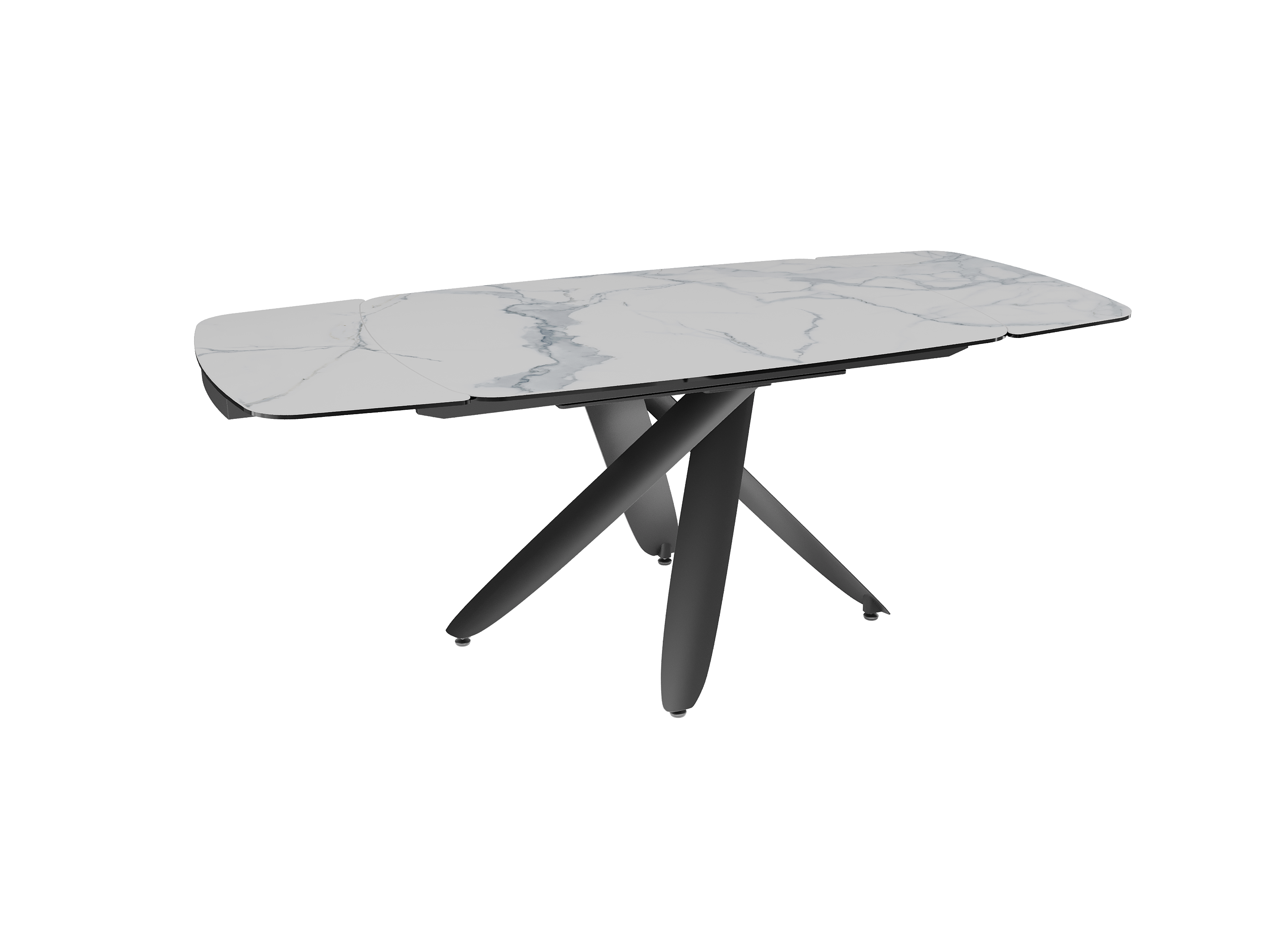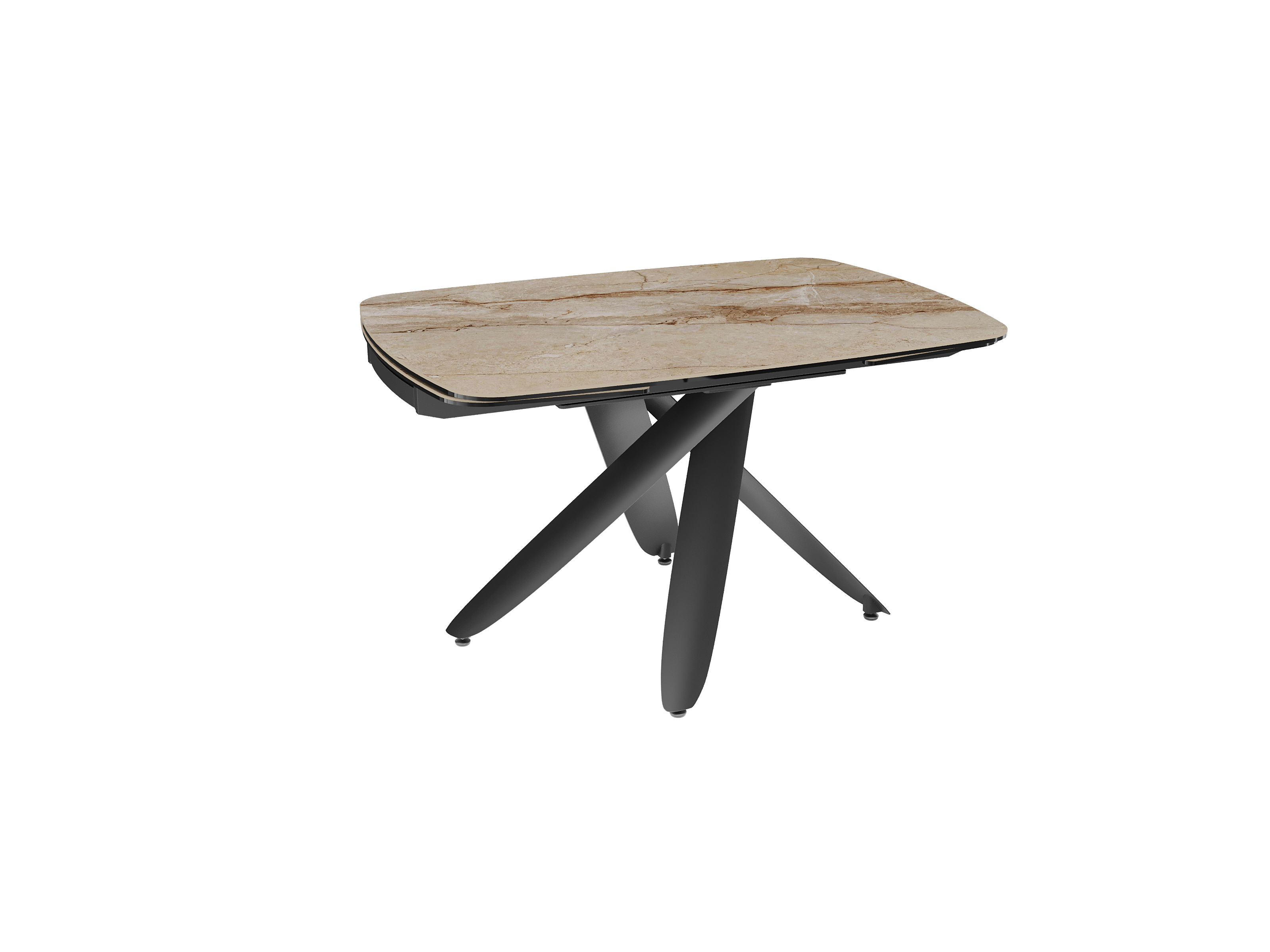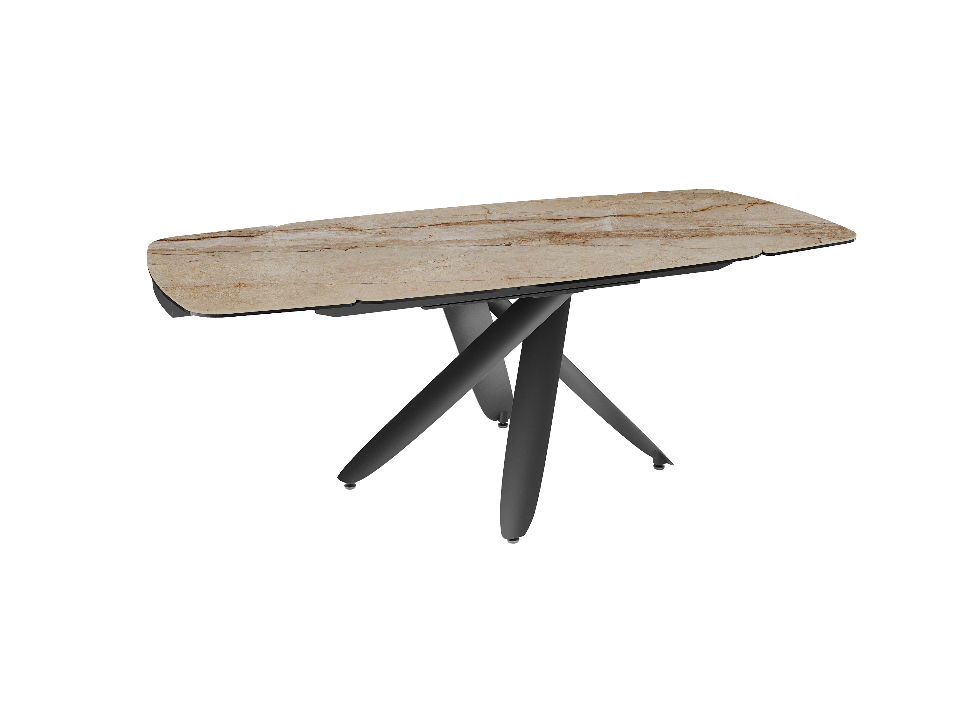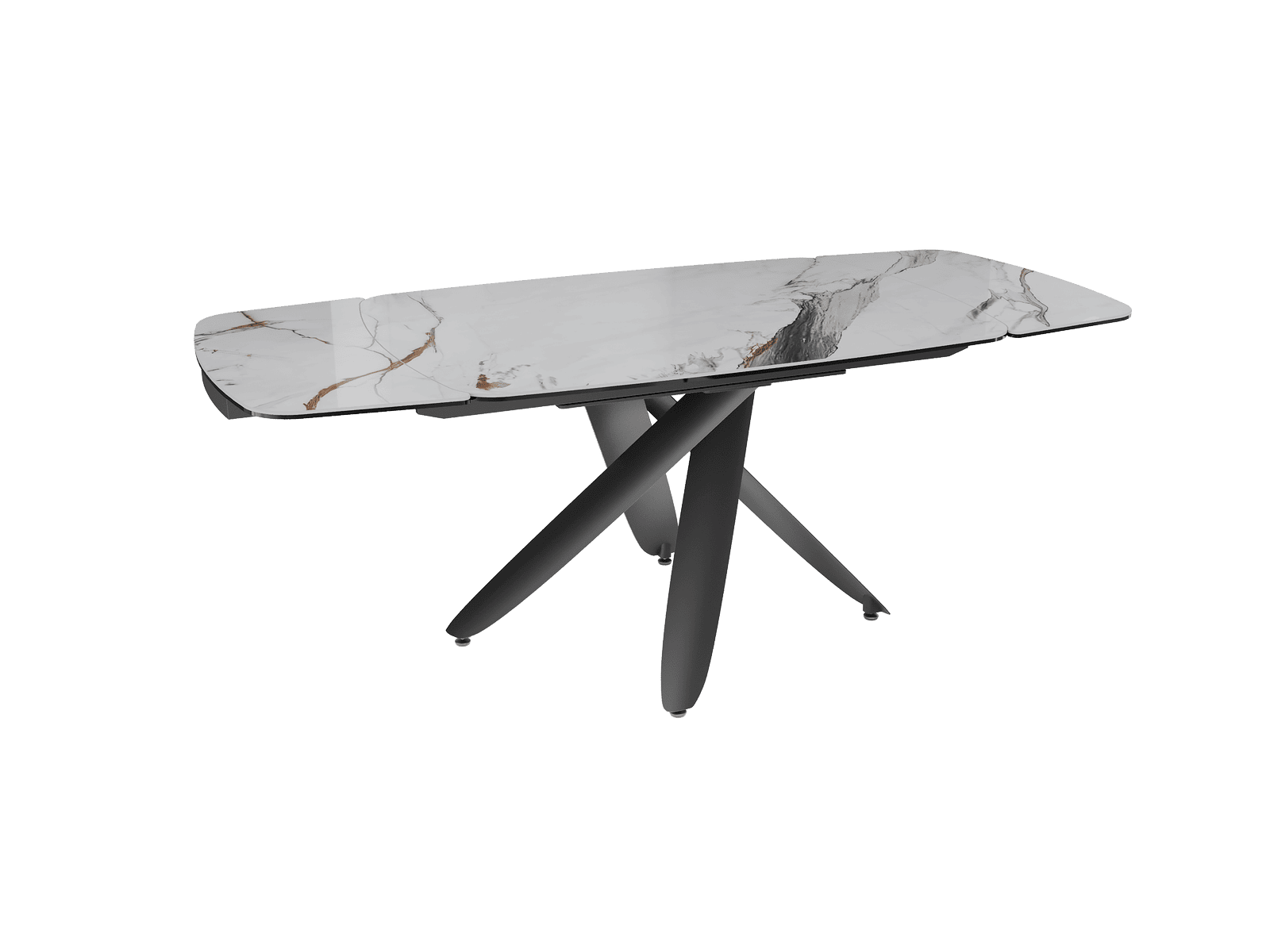Dimensiones y detalles Peso neto : 113 Kg Color : Mármol Fiorentino Dimensiones : 130/200 x 90 x 76 cm Dimensiones cerrado : 130 x 90 x 76 cm Dimensiones abiertas : 200 x 90 x 76 cm Número de comensales : 6-8 personas Base : Acero lacado negro mate Superficie : Cerámica de 6 mm pegada sobre vidrio de 8 mm Extensión