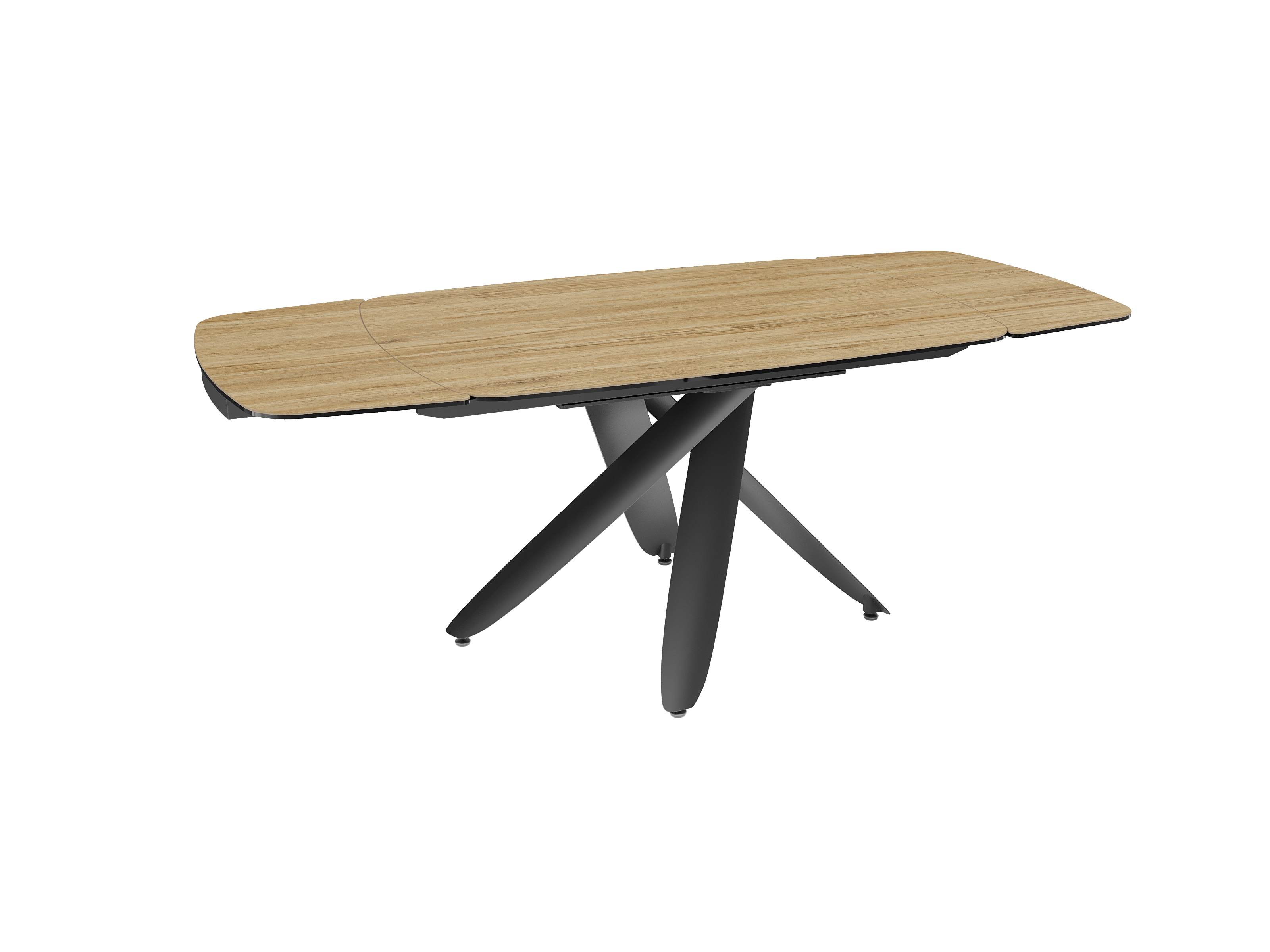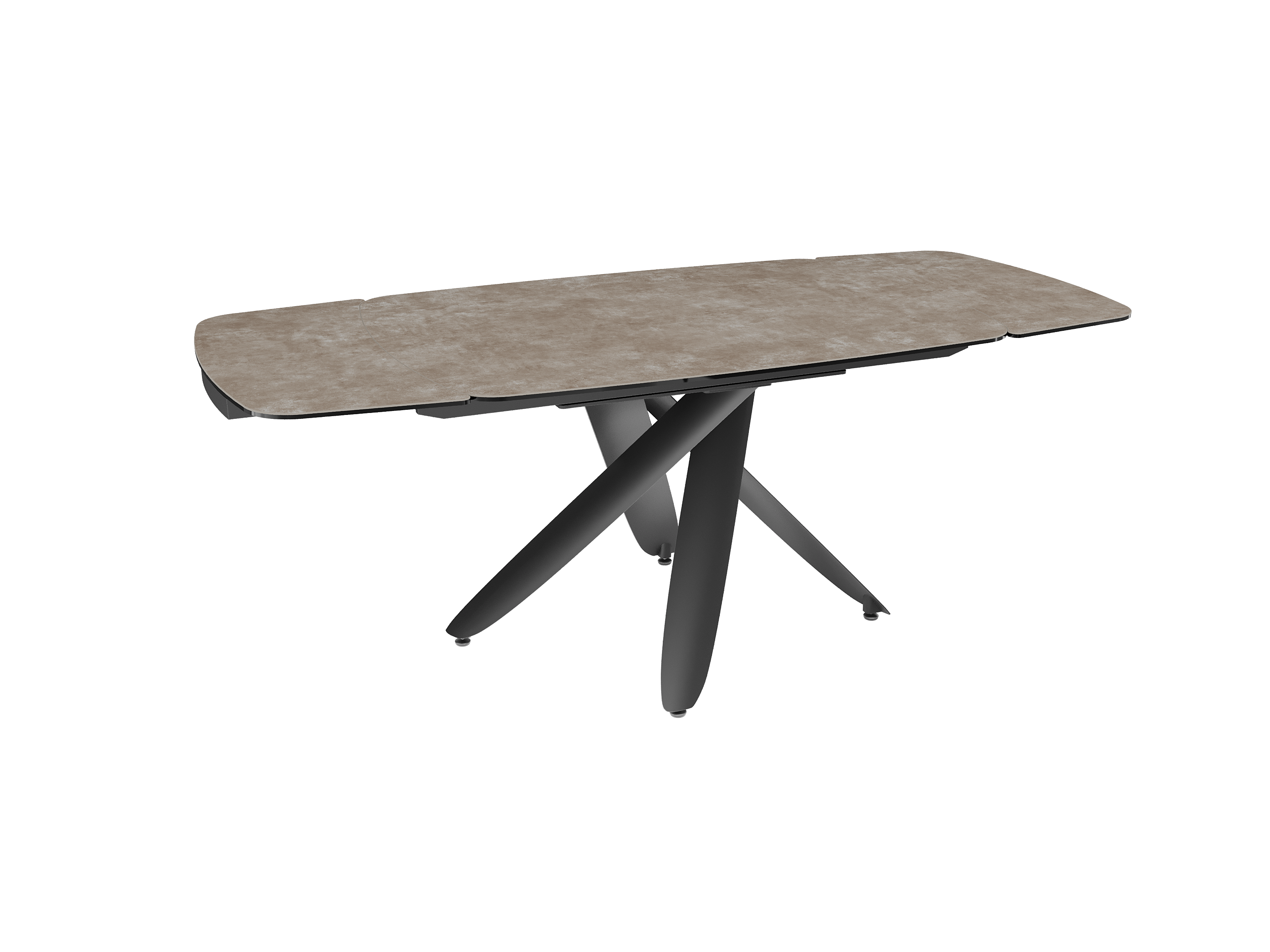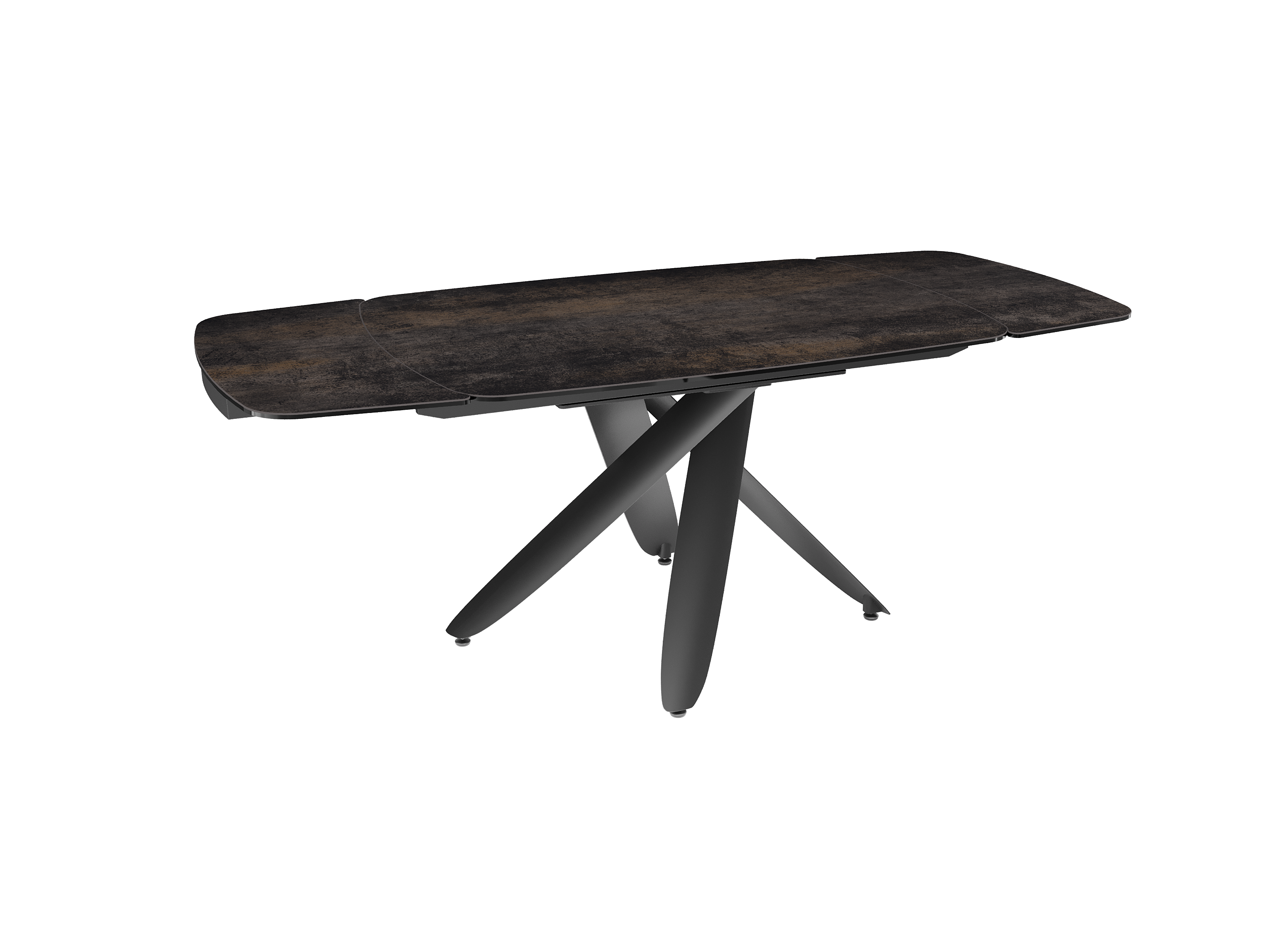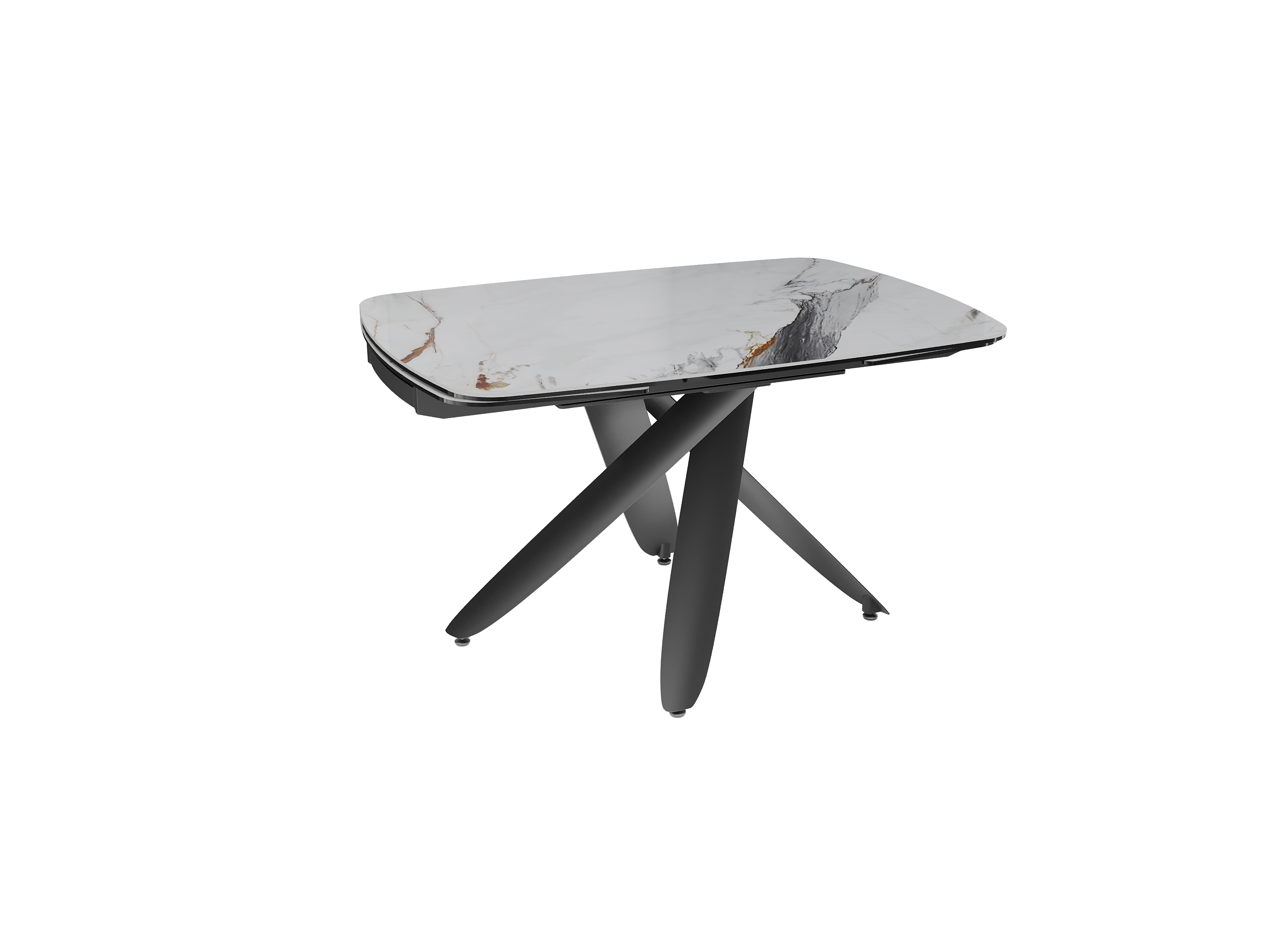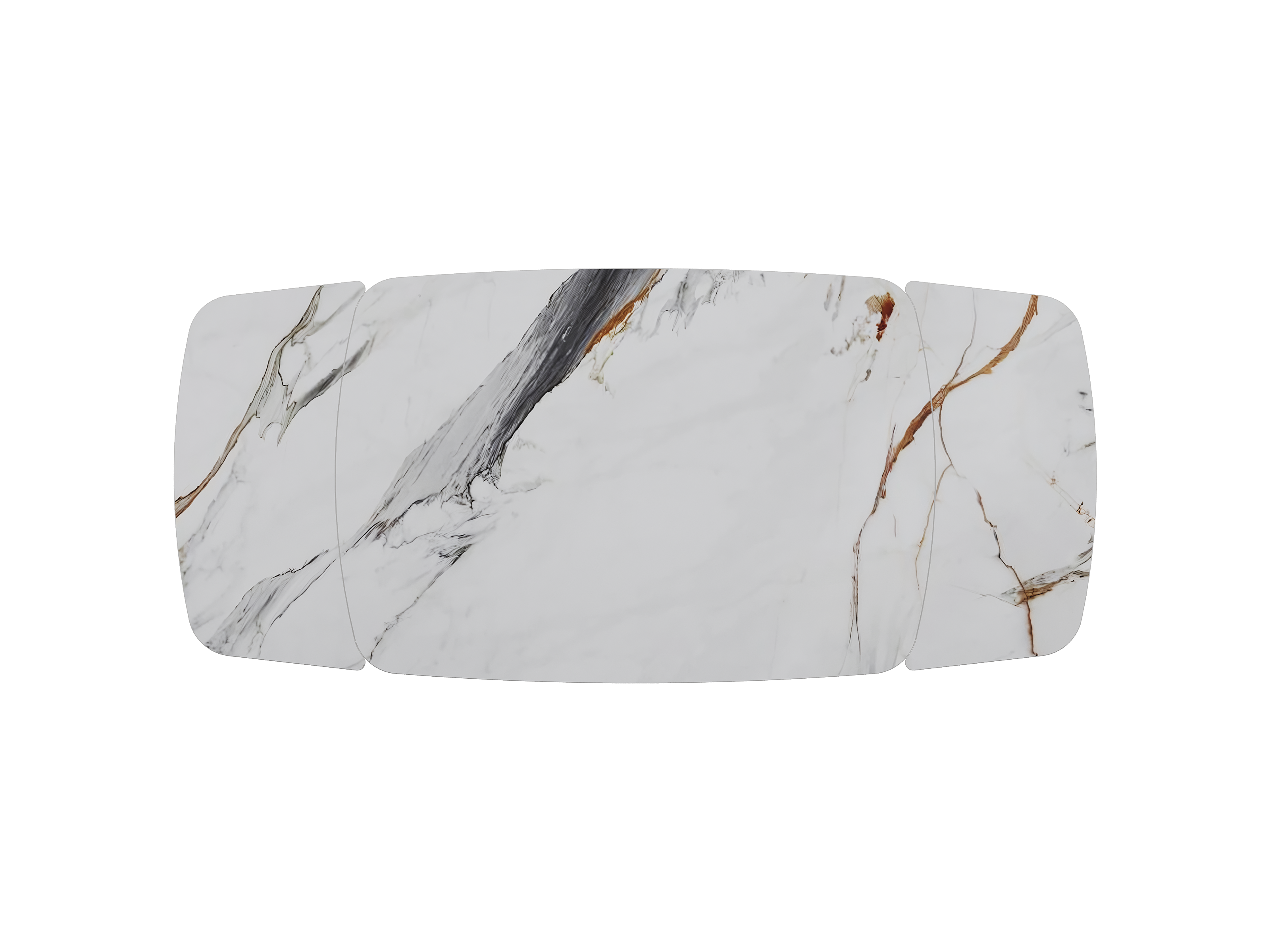 Dimensiones y detalles Peso neto : 113 Kg Color : Mármol Fiorentino Dimensiones : 130/200 x 90 x 76 cm Dimensiones cerrado : 130 x 90 x 76 cm Dimensiones abiertas : 200 x 90 x 76 cm Número de comensales : 6-8 personas Base : Acero lacado negro mate Superficie : Cerámica de 6 mm pegada sobre vidrio de 8 mm Extensión