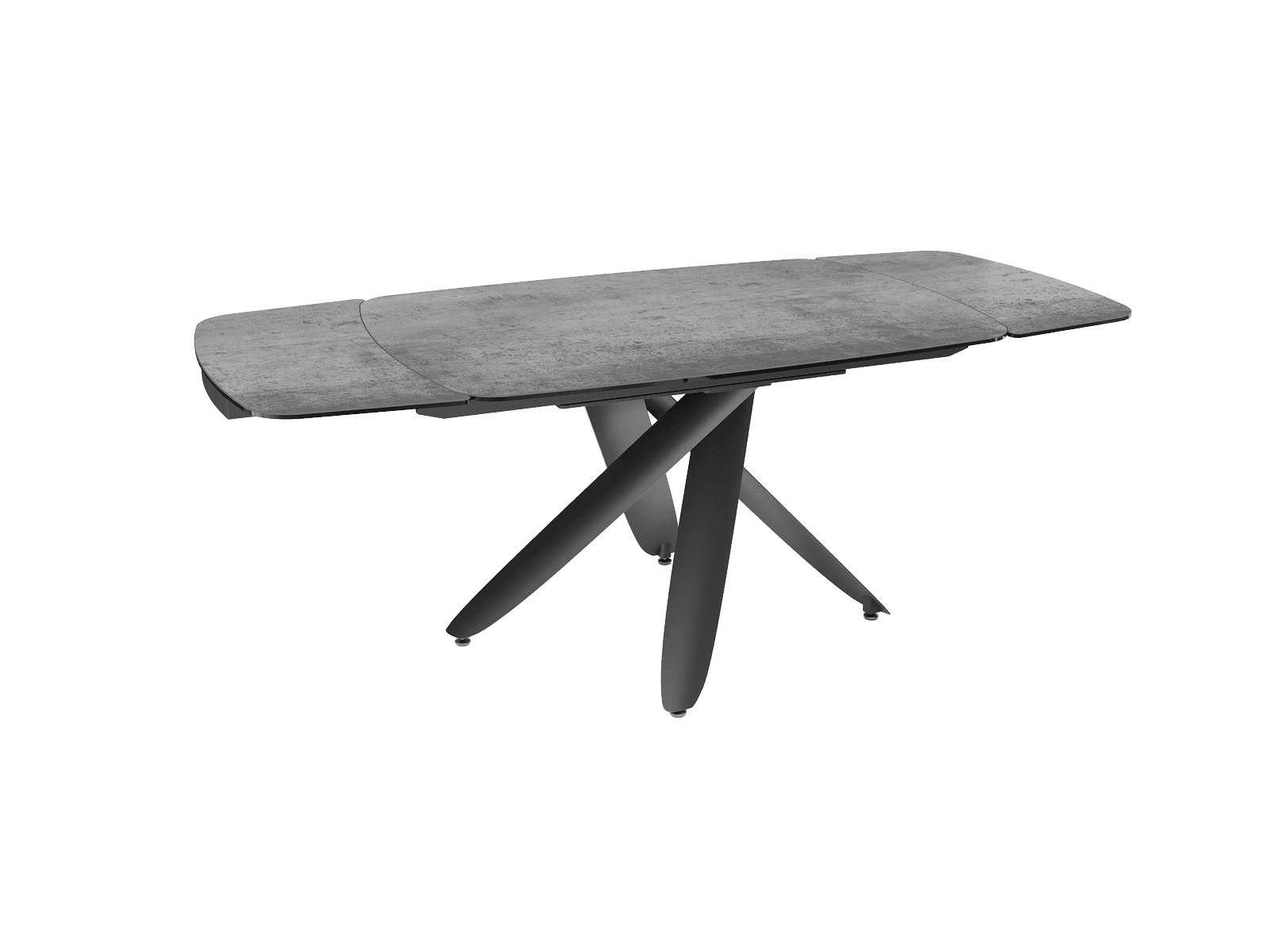 Dimensiones y detalles Peso neto : 113 Kg Color : Plata Dimensiones : 130/200 x 90 x 76 cm Dimensiones cerrado : 130 x 90 x 76 cm Dimensiones abiertas : 200 x 90 x 76 cm Número de comensales : 6-8 personas Base : Acero lacado negro mate Superficie : Cerámica de 3 mm pegada sobre vidrio de 8 mm Extensión