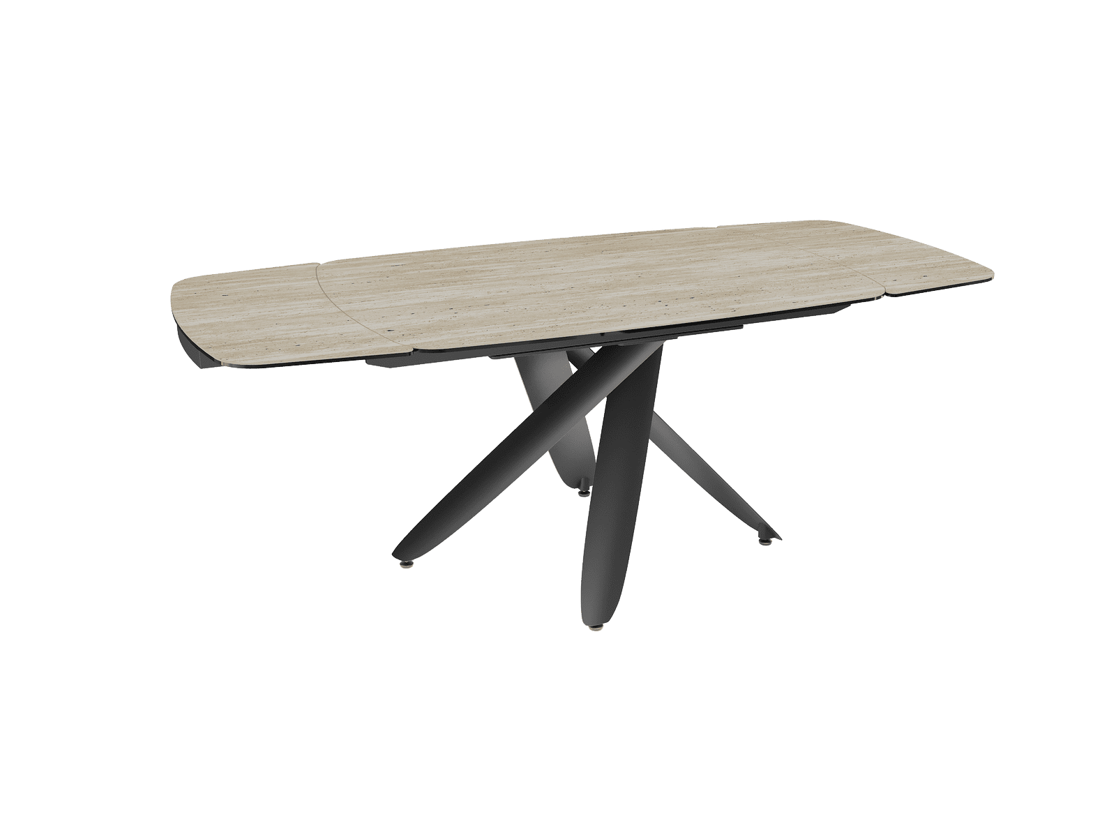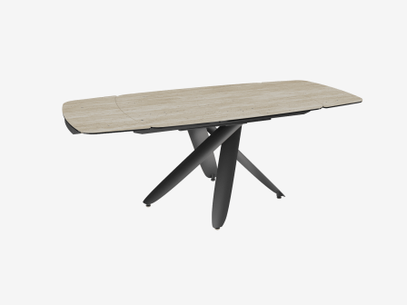 Dimensiones y detalles Peso neto : 113 Kg Color : Travertino Dimensiones : 130/200 x 90 x 76 cm Dimensiones cerrado : 130 x 90 x 76 cm Dimensiones abiertas : 200 x 90 x 76 cm Número de comensales : 6-8 personas Base : Acero lacado negro mate Superficie : Cerámica de 3 mm pegada sobre vidrio de 8 mm Extensión