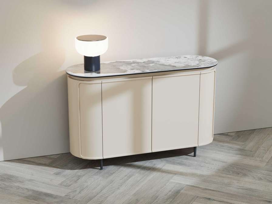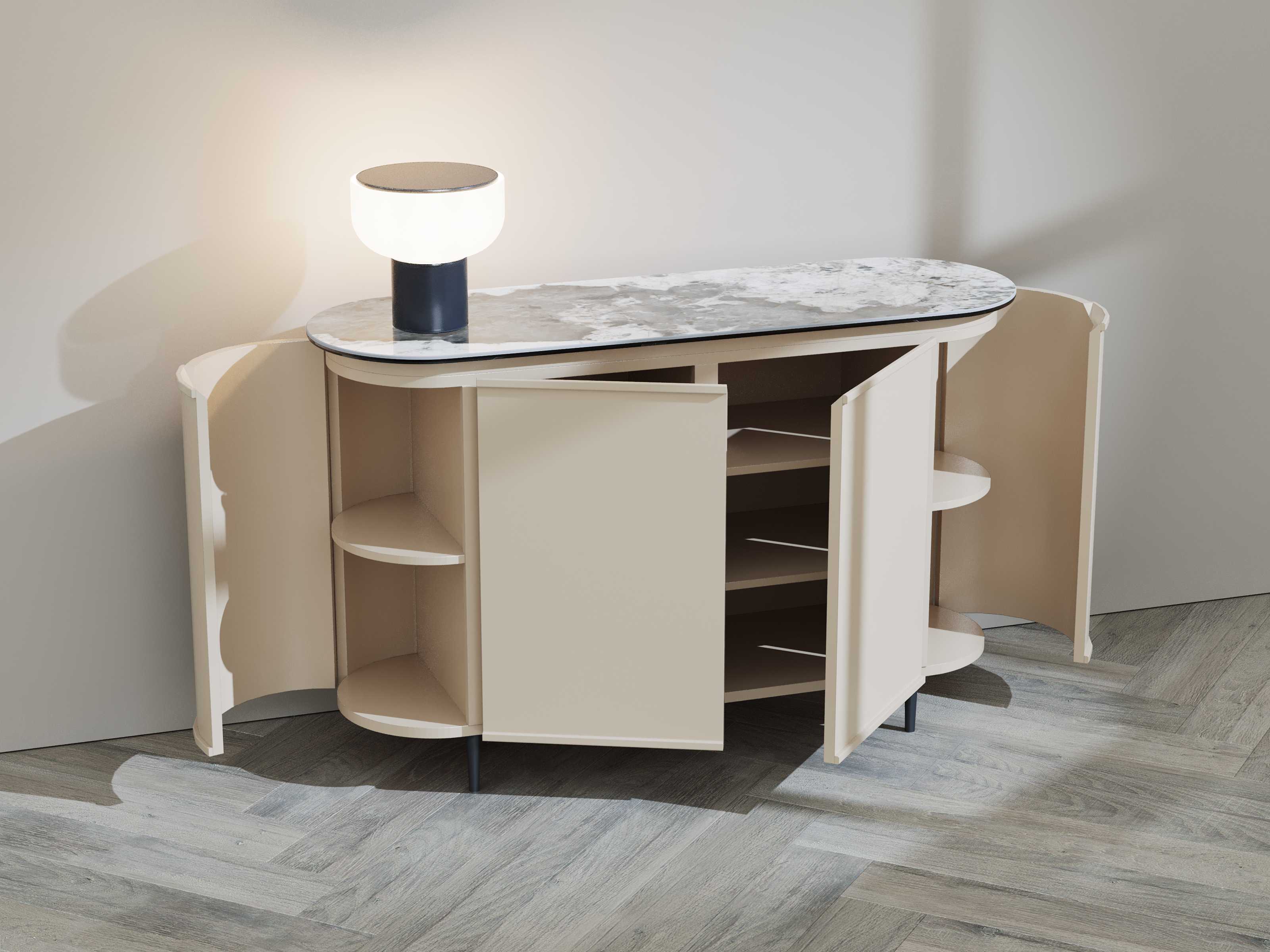 Dimensiones y detalles Peso neto : 100,5 Kg Color : Mármol Calcatta Dimensiones : 130 x 43 x 81 cm Altura : 81 cm Ancho : 43 cm Largo : 130 cm Número de compartimentos : 7 Número de puertas : 4 Superficie : Cerámica de 3 mm pegada sobre vidrio de 6 mm Estructura : MDF lacado marfil mate
