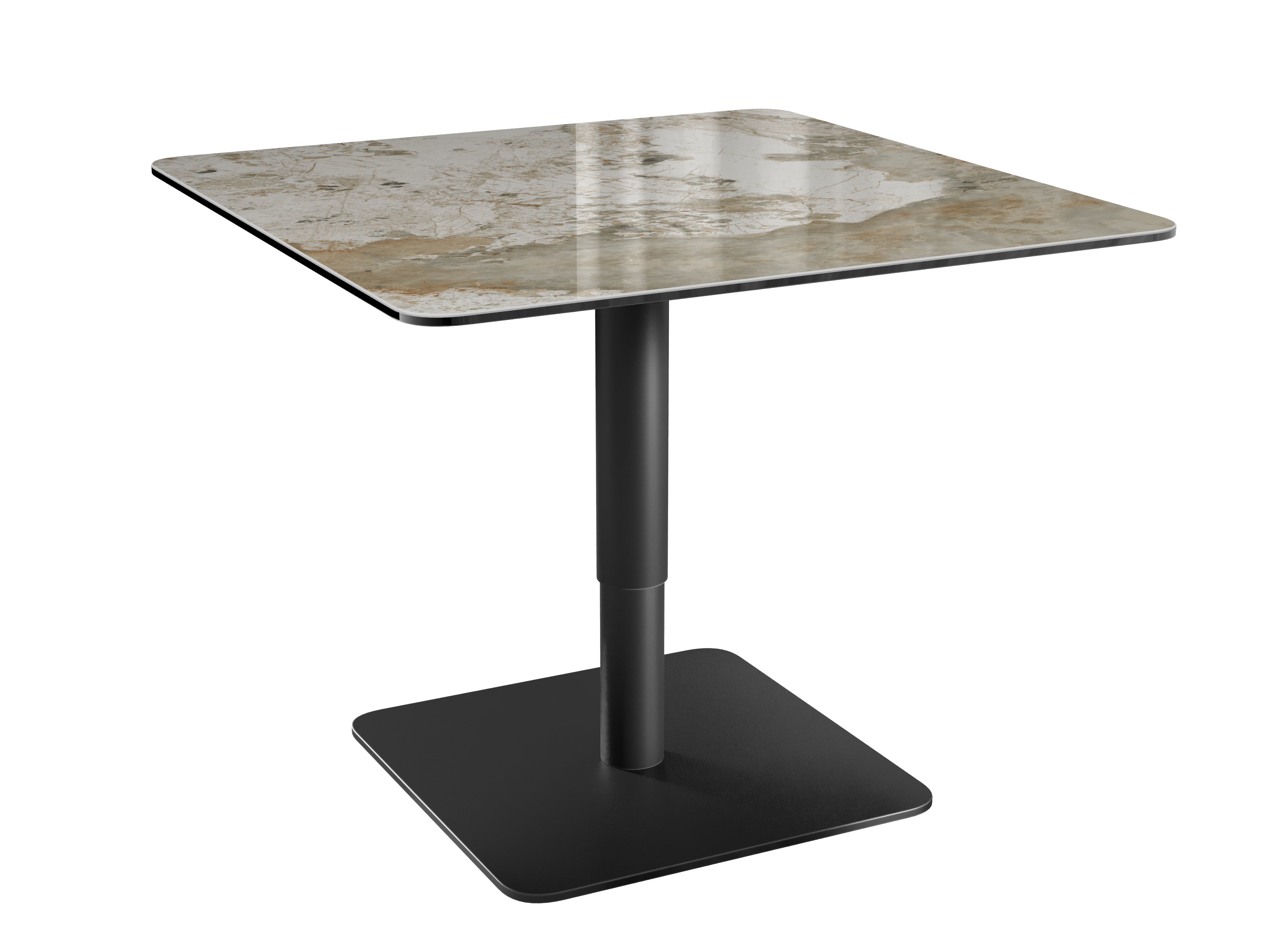 Orlando Lift est l’élément phare qu’il manque à votre salon. Elégante et moderne, ses proportions sont parfaitement équilibrées. Son plateau carré est conçu en céramique Marbre Mat de 3 mm collée sur un verre de 6 mm, il mesure 80 x 80 cm. Orlando Lift possède une particularité, son piétement s’ajuste selon la hauteur de votre choix. En un simple geste, cette table basse varie entre 45 et 65 cm de hauteur. Appréciez son piétement élégant, conçu en acier laqué noir mat.