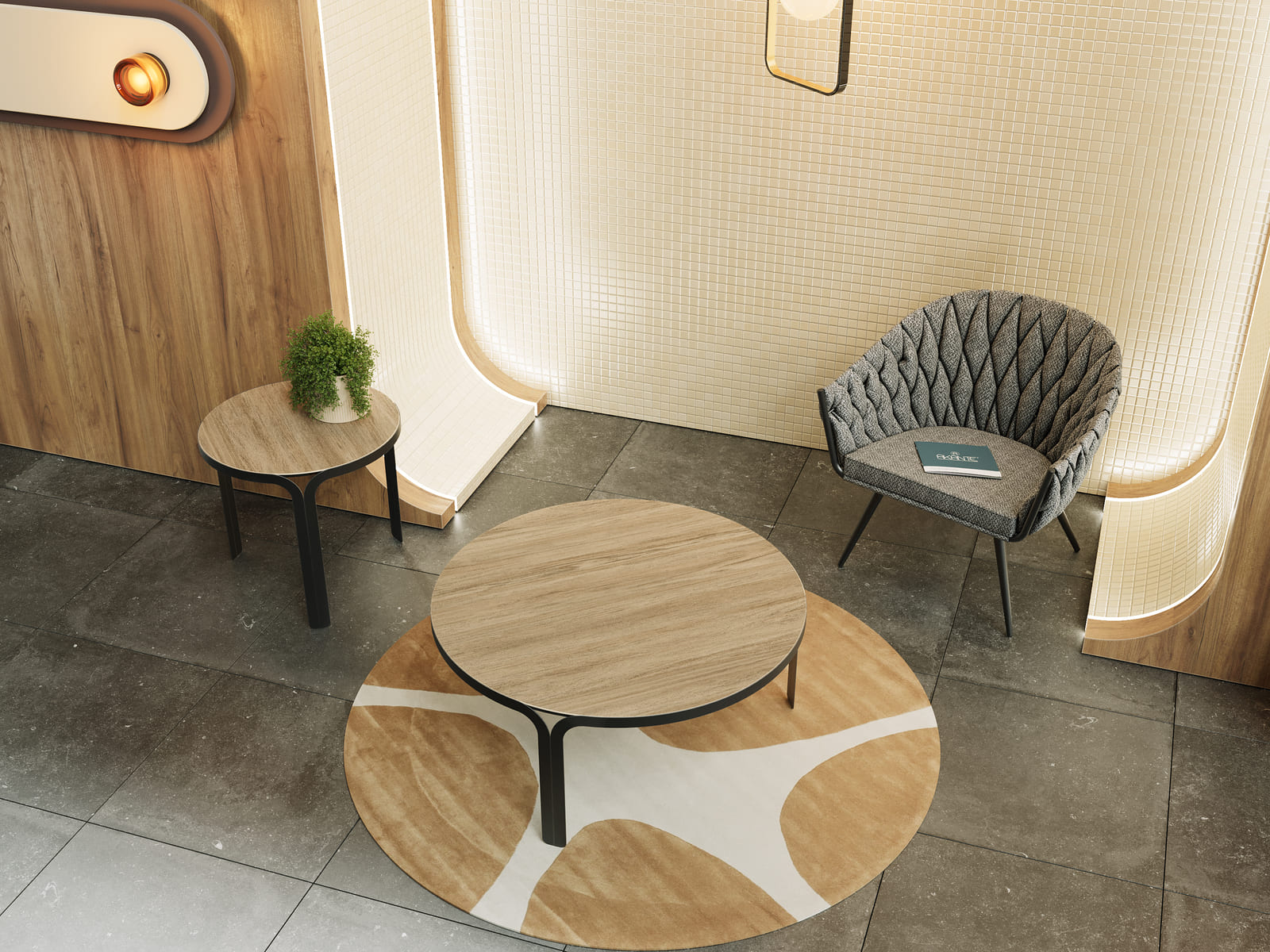 Moderne et élégante, la table basse Madura est idéale pour votre salon. Son plateau est composé de 3 mm de céramique collée sur un verre de 6 mm d'épaisseur. La céramique chêne clair crée une belle harmonie avec le piétement en acier laqué noir mat. Les matériaux utilisés sont durables, résistants à l’usure, même après plusieurs années d’utilisation intensive. La table basse Madura mesure 90 cm de diamètre et 40 cm de hauteur.