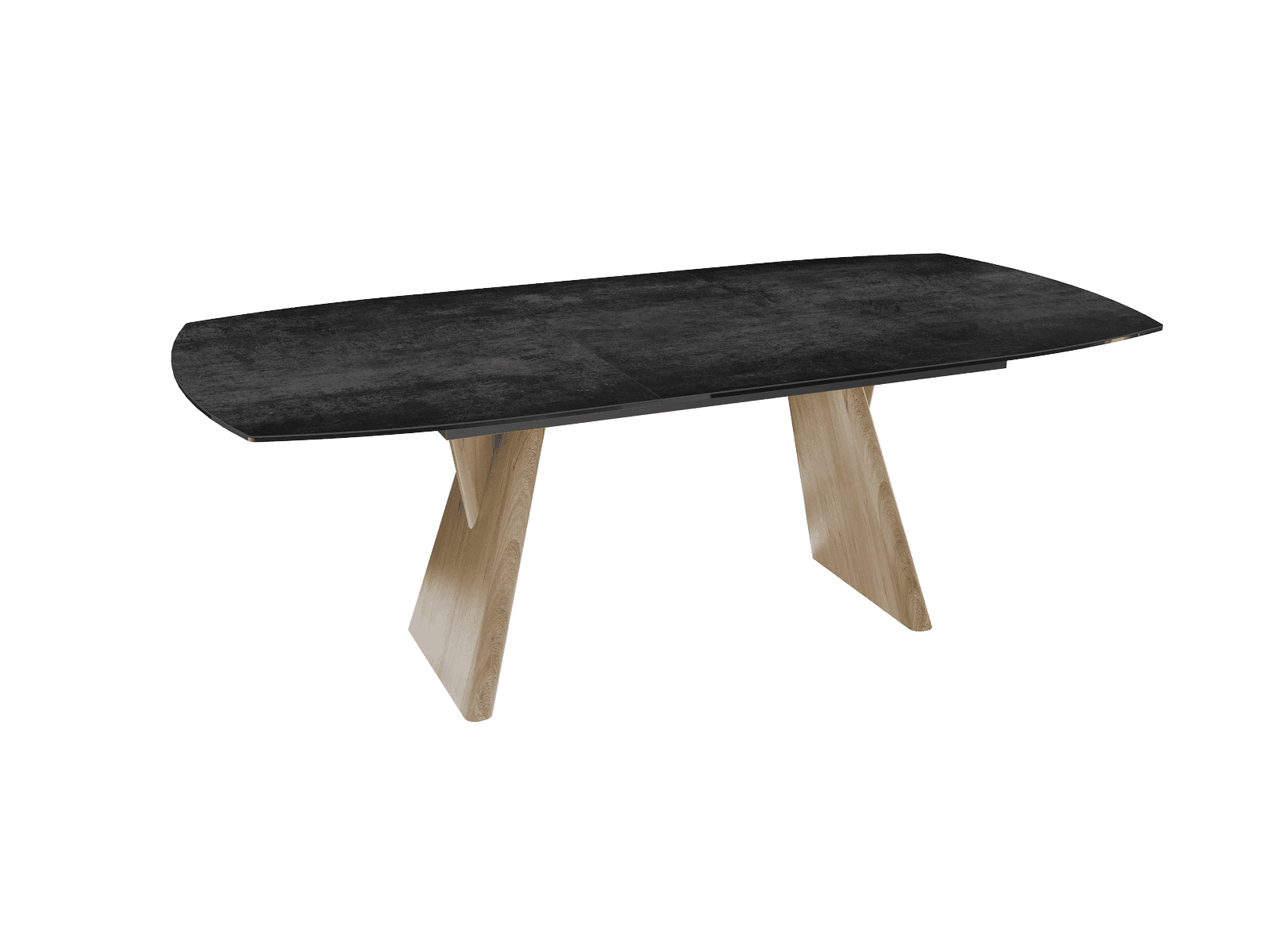 Découvrez la table de repas OMAHA. Grande nouveauté chez Akante, ce modèle se distingue par son piétement composé de deux pieds en bois massif plaqué chêne. Dotée d’un mécanisme astucieux, identique au modèle phare PHOENIX, il suffit de tirer sur le côté pour faire apparaître une rallonge centrale automatique. Cette collection est disponible en trois dimensions : 130/170 × 100 × 76 cm, 160/210 × 100 × 76 cm et 200/260 × 100 × 76 cm. Personnalisez votre plateau parmi 12 finitions de céramique.