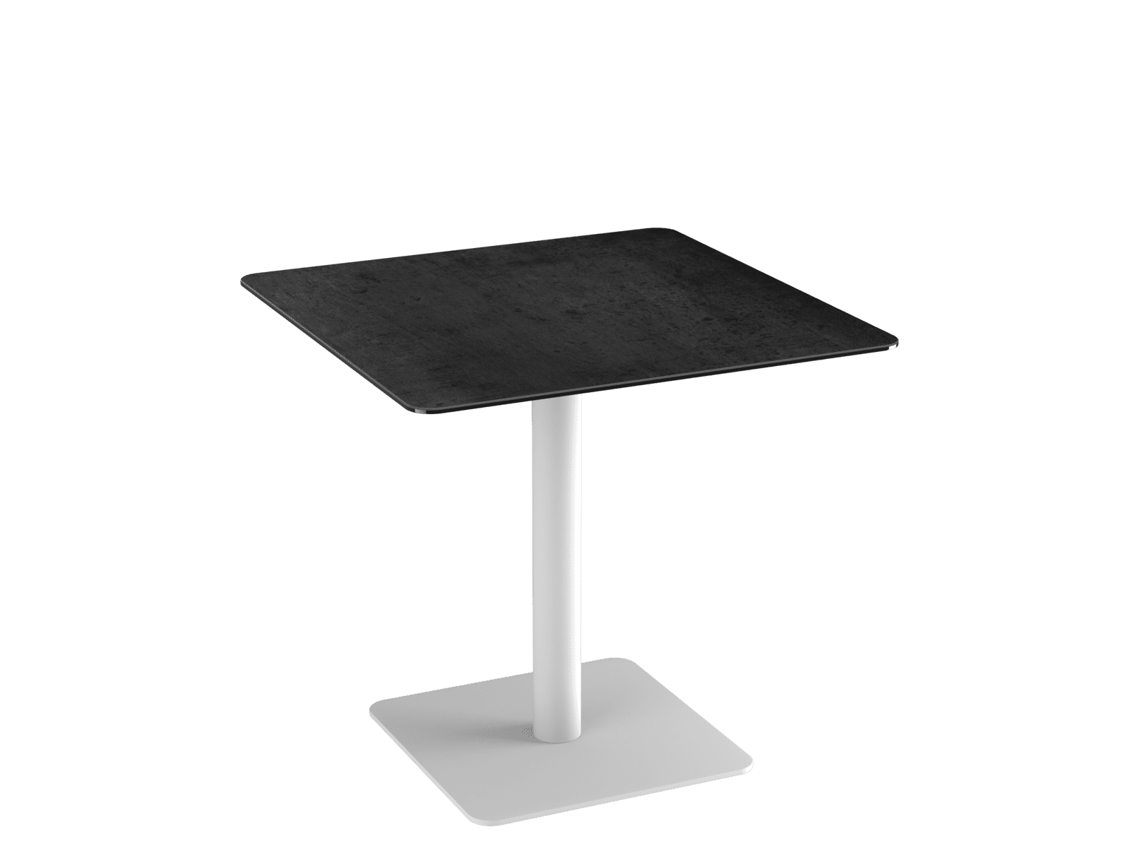 La table de repas Orlando carrée et sa céramique titane impose son charme. La sobriété du plateau rend cette table de bistro raffinée. La céramique fait 3 mm d’épaisseur et est collée sur un vitrage de 8 mm. Cette sobriété est controversée par le piétement de 75 cm de hauteur en acier laqué blanc mat. Orlando carrée nous fait voyager avec un retour dans le temps en mettant en avant la combinaison du noir et blanc.