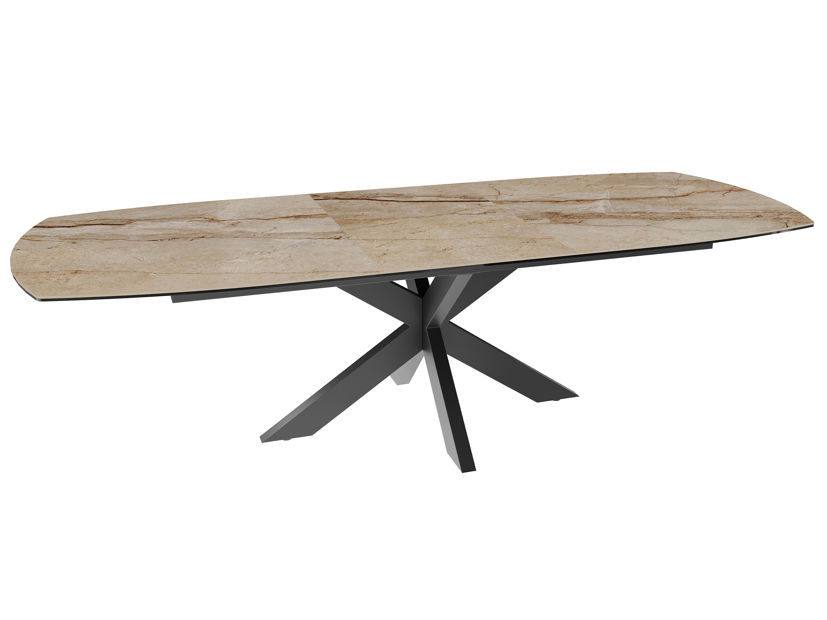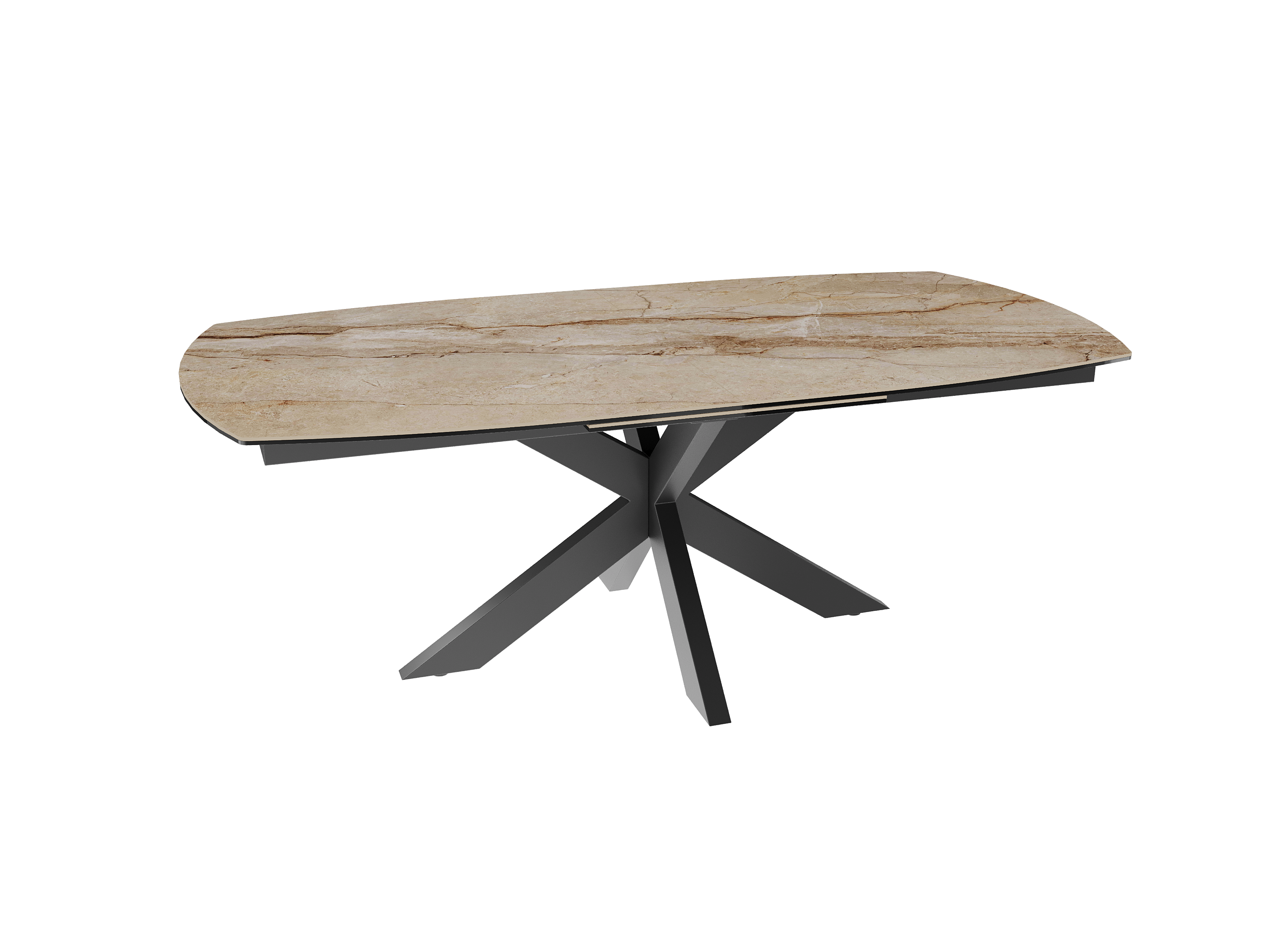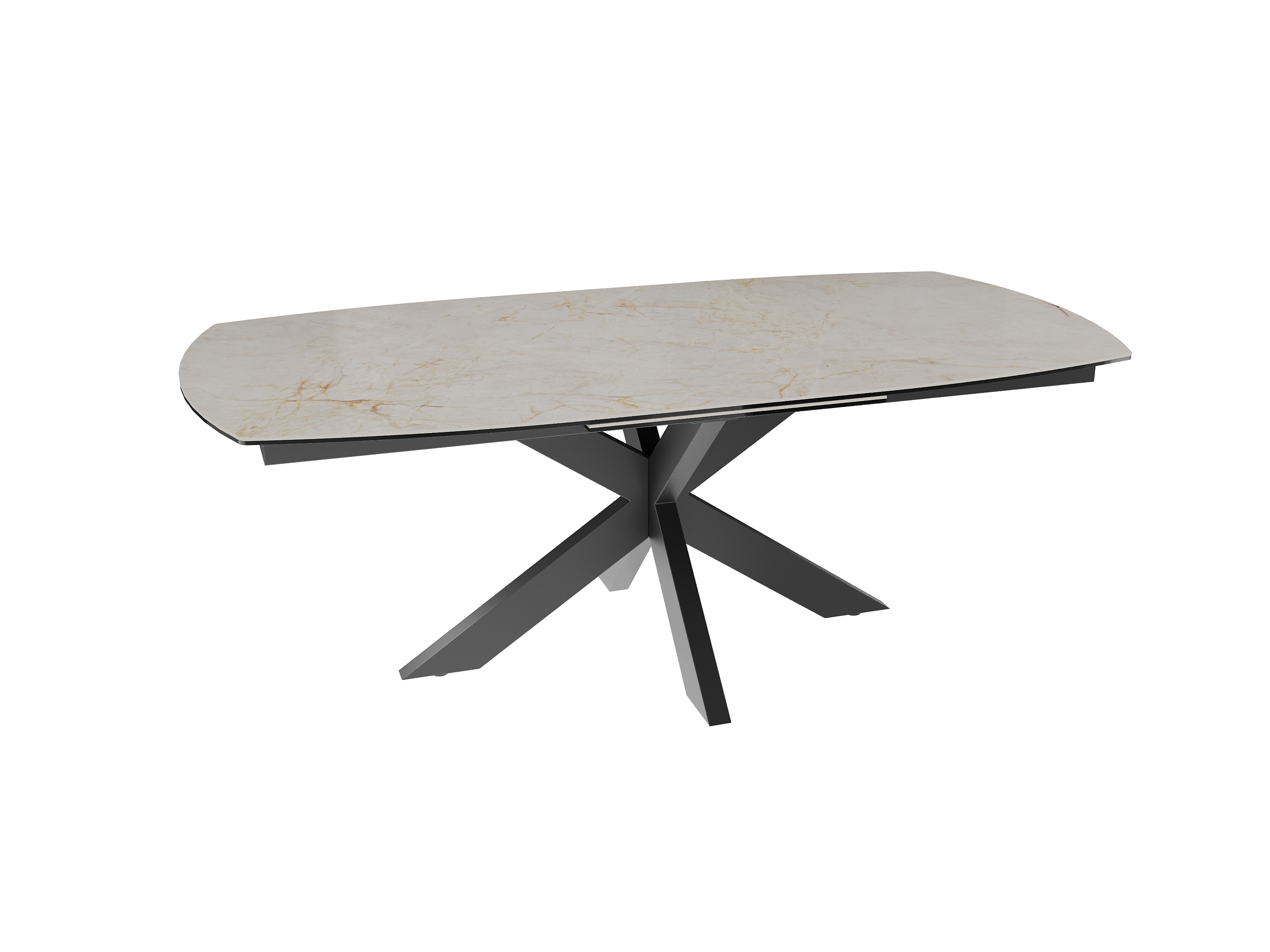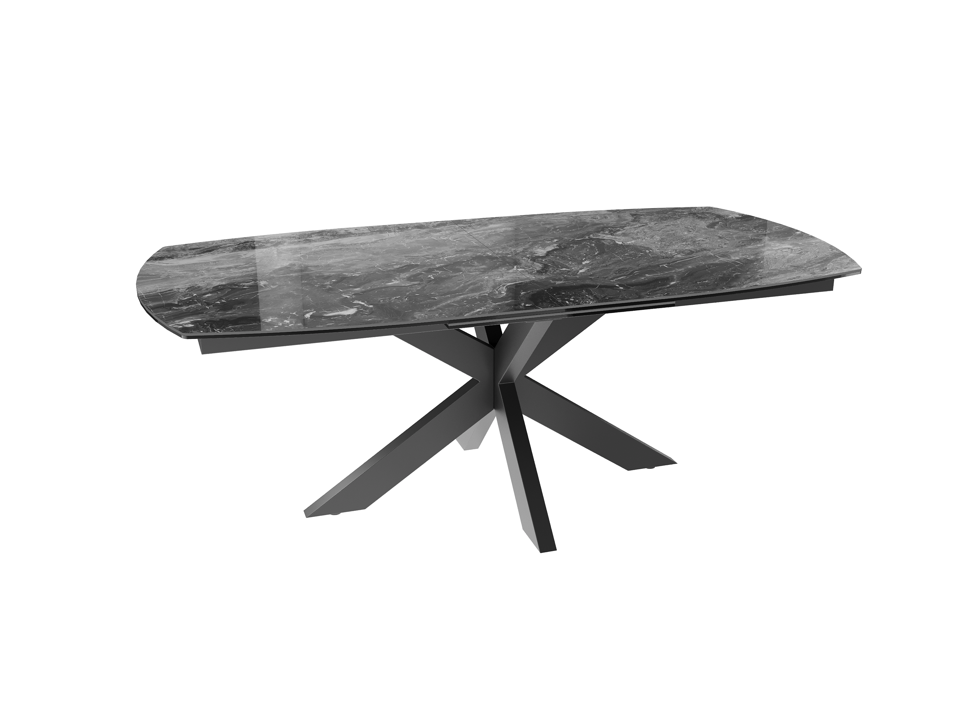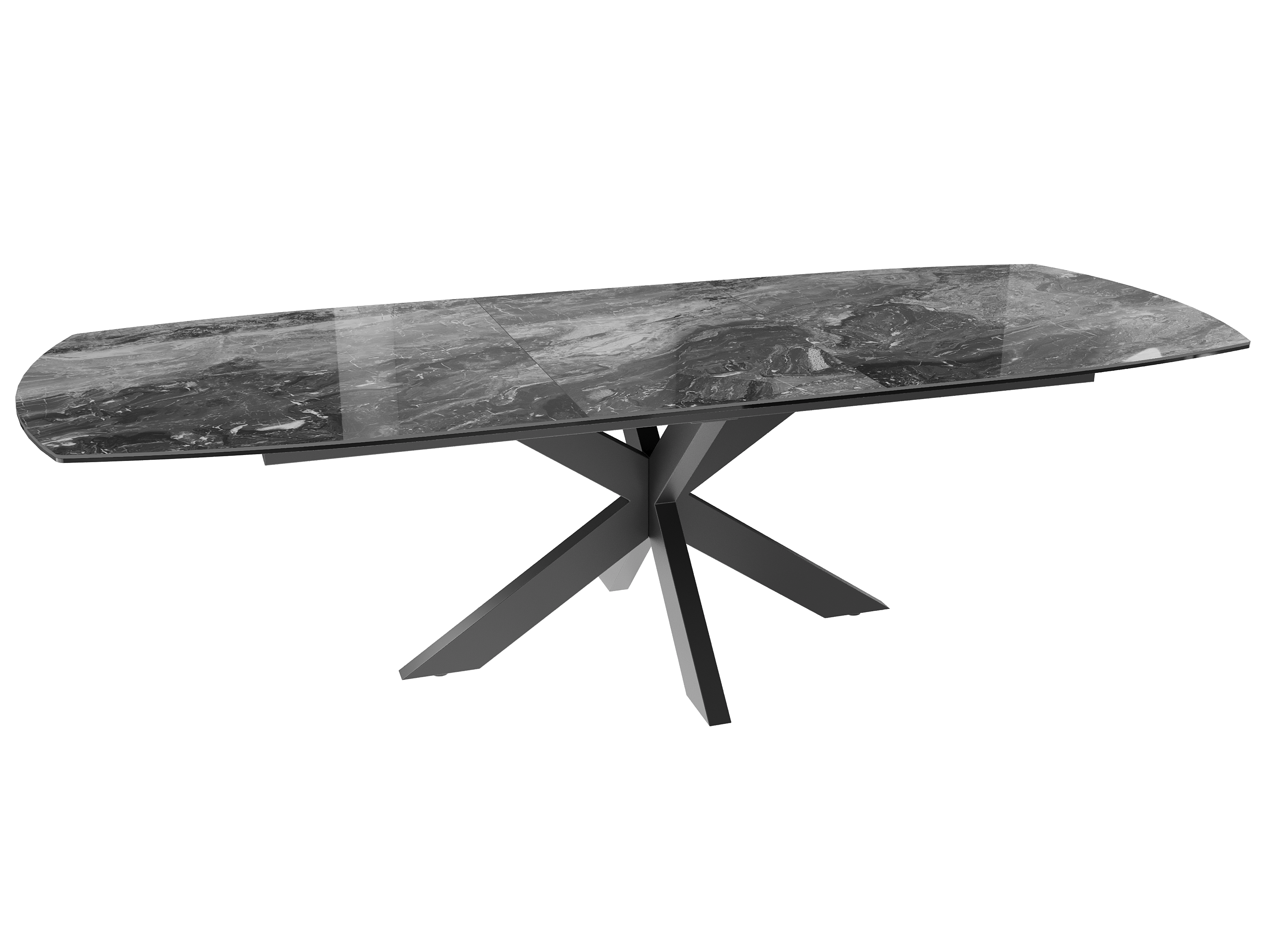 Akante vous propose la table de repas Phoenix. Cette table mesure deux mètres de long et dispose d'une rallonge centrale de 60 cm. Ouverte la table de repas Phoenix mesure ainsi 260cm. Sa largeur au centre est de 100cm ce qui permet de s'installer confortablement. Son mécanisme d'ouverture est simple et efficace. Il suffit de glisser le plateau vers soi et la table s'ouvre en deux et laisse découvrir la rallonge qui se soulève et s'installe au centre. Son piétement en croix est en acier laqué noir et son plateau est en céramique titane collée sur verre. La céramique titane est une céramique anthracite structurée exclusive à Akante et fabriquée en Espagne. Dépot INPI : 20190743