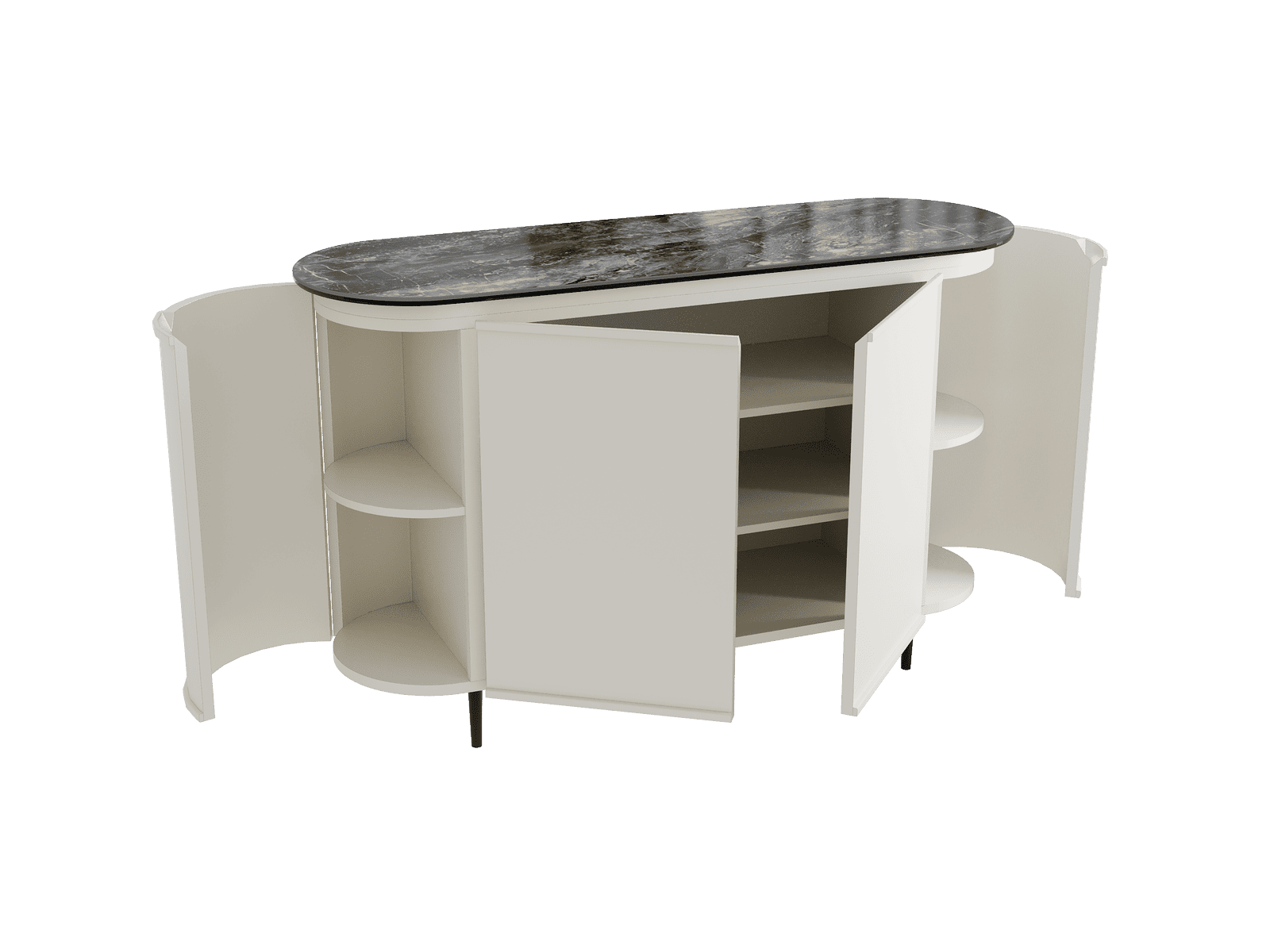 The OHIO sideboard combines the warmth of wood with the elegance of ceramic for a refined and functional style. It offers generous storage capacity thanks to its integrated shelves and drawers. Its top, available in ten ceramic finishes, blends harmoniously with any interior. Offered in two sizes (130 or 170 cm), the OHIO sideboard embodies a perfect balance between modernity and authenticity.