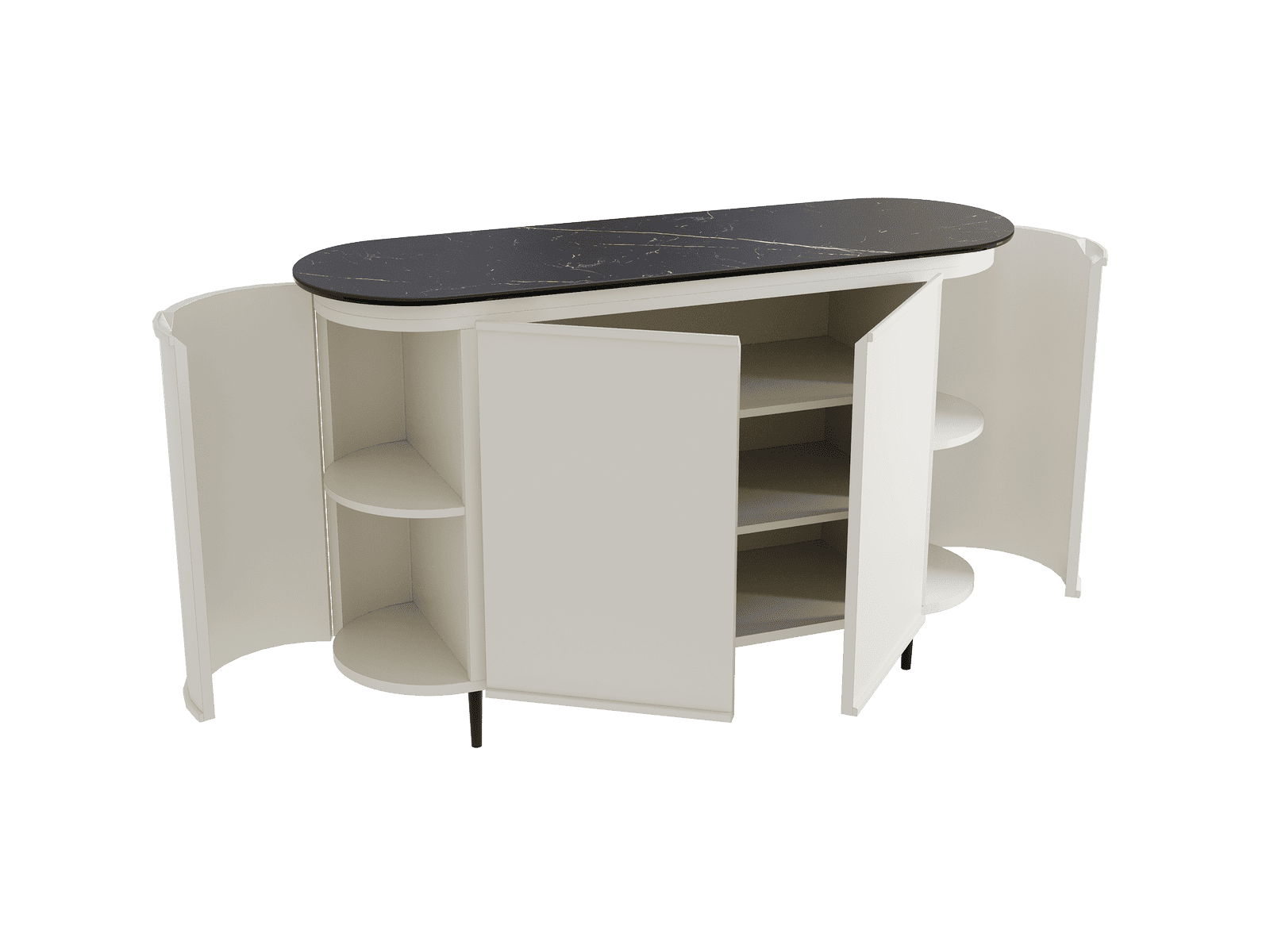 The OHIO sideboard combines the warmth of wood with the elegance of ceramic for a refined and functional style. It offers generous storage capacity thanks to its integrated shelves and drawers. Its top, available in ten ceramic finishes, blends harmoniously with any interior. Offered in two sizes (130 or 170 cm), the OHIO sideboard embodies a perfect balance between modernity and authenticity.