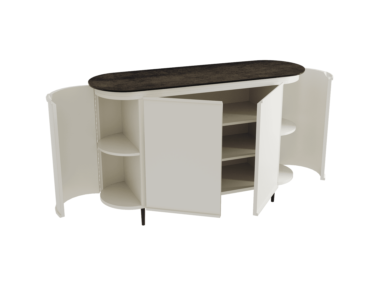 The OHIO sideboard combines the warmth of wood with the elegance of ceramic for a refined and functional style. It offers generous storage capacity thanks to its integrated shelves and drawers. Its top, available in ten ceramic finishes, blends harmoniously with any interior. Offered in two sizes (130 or 170 cm), the OHIO sideboard embodies a perfect balance between modernity and authenticity.