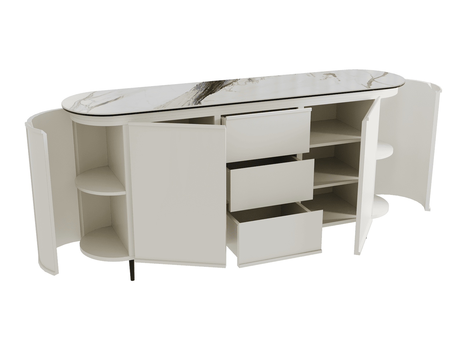 The OHIO sideboard combines the warmth of wood with the elegance of ceramic for a refined and functional style. It offers generous storage capacity thanks to its integrated shelves and drawers. Its top, available in ten ceramic finishes, blends harmoniously with any interior. Offered in two sizes (130 or 170 cm), the OHIO sideboard embodies a perfect balance between modernity and authenticity.