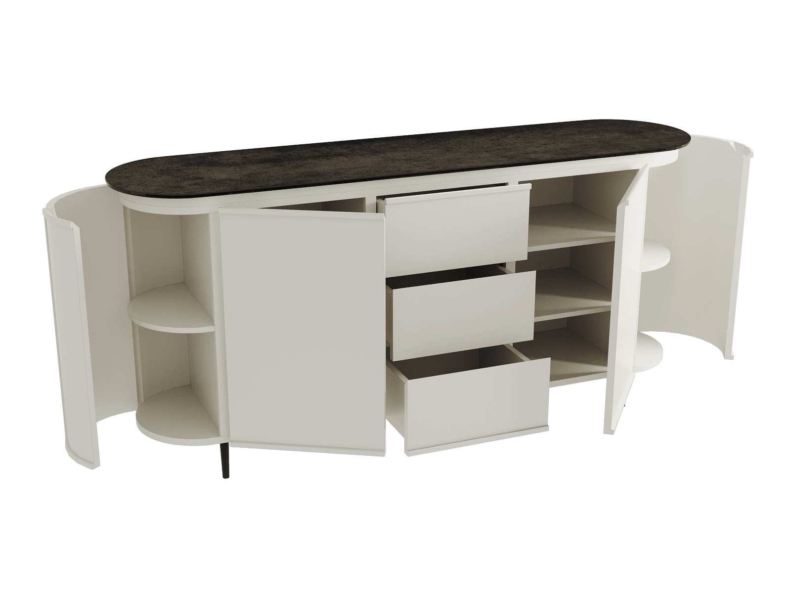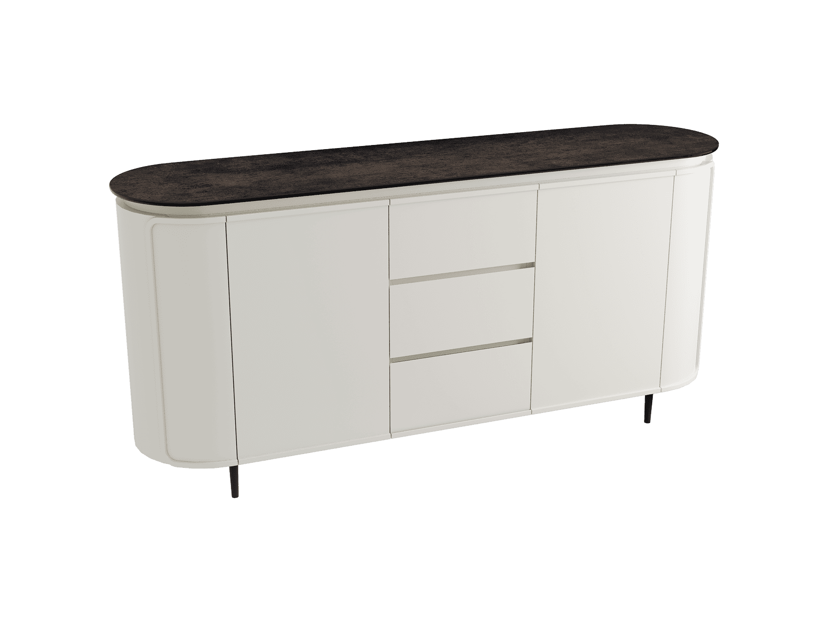 The OHIO sideboard combines the warmth of wood with the elegance of ceramic for a refined and functional style. It offers generous storage capacity thanks to its integrated shelves and drawers. Its top, available in ten ceramic finishes, blends harmoniously with any interior. Offered in two sizes (130 or 170 cm), the OHIO sideboard embodies a perfect balance between modernity and authenticity.