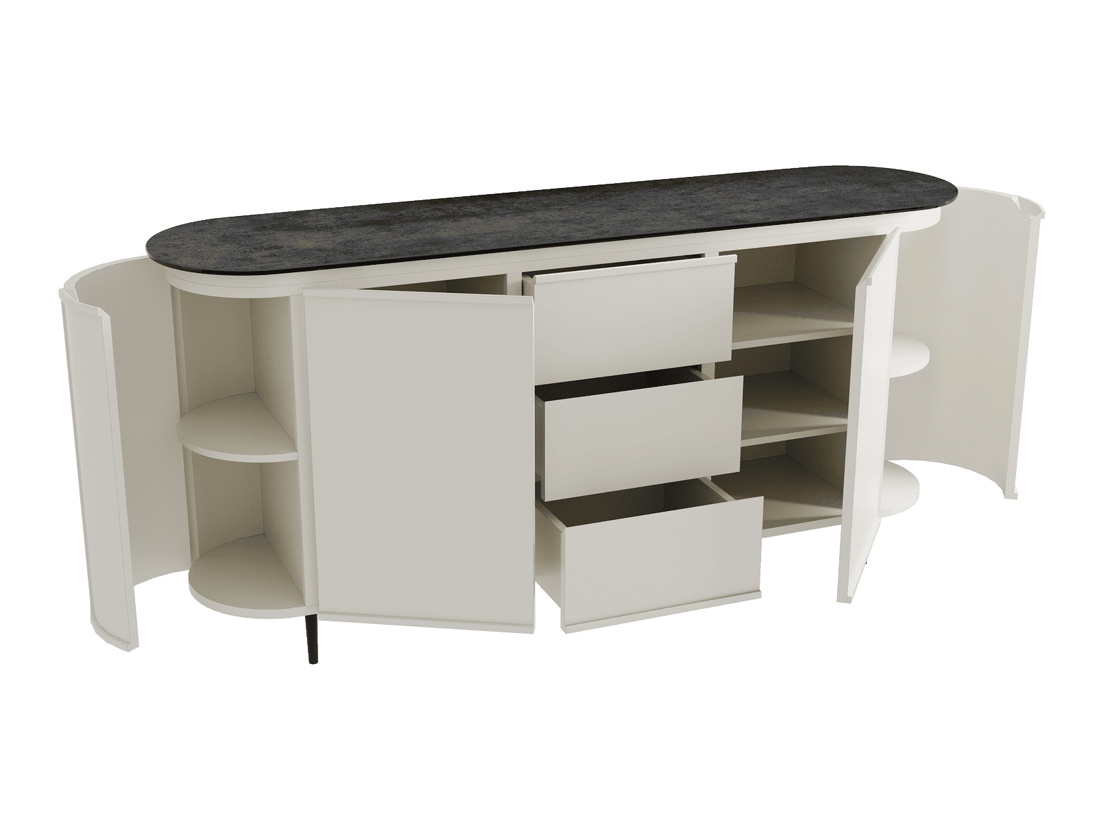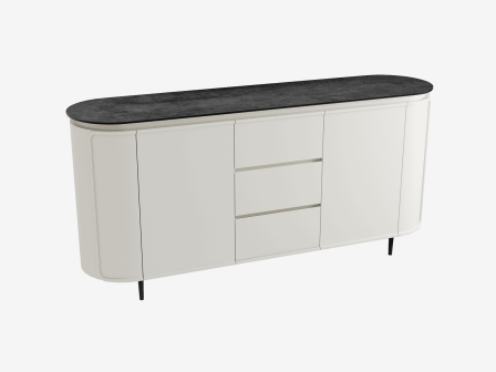 The OHIO sideboard combines the warmth of wood with the elegance of ceramic for a refined and functional style. It offers generous storage capacity thanks to its integrated shelves and drawers. Its top, available in ten ceramic finishes, blends harmoniously with any interior. Offered in two sizes (130 or 170 cm), the OHIO sideboard embodies a perfect balance between modernity and authenticity.