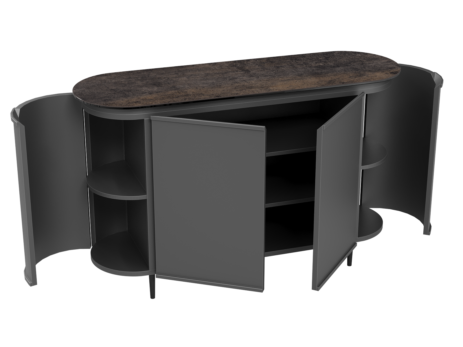 The OHIO sideboard combines the warmth of wood with the elegance of ceramic for a refined and functional style. It offers generous storage capacity thanks to its integrated shelves and drawers. Its top, available in ten ceramic finishes, blends harmoniously with any interior. Offered in two sizes (130 or 170 cm), the OHIO sideboard embodies a perfect balance between modernity and authenticity.