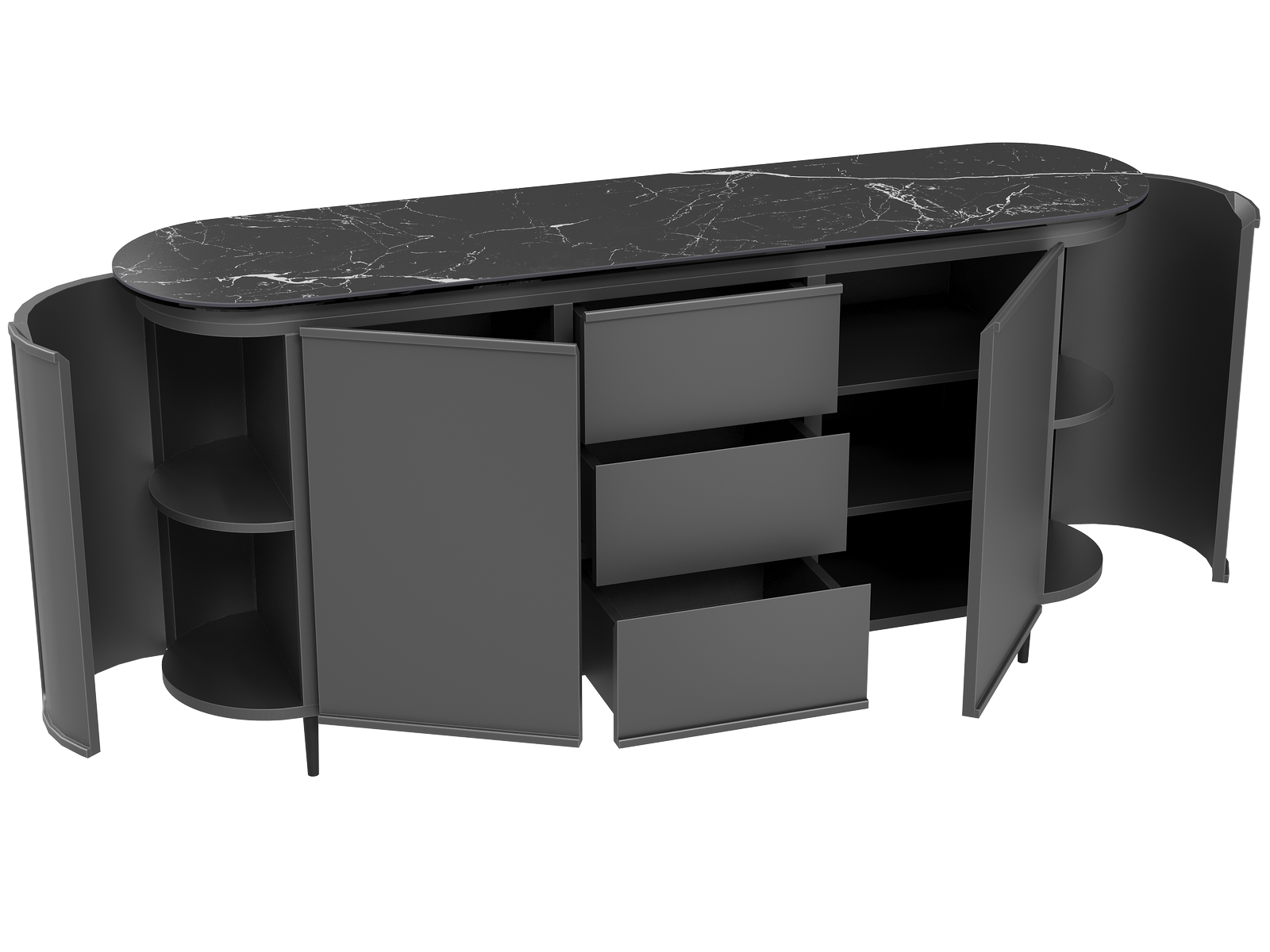 The OHIO sideboard combines the warmth of wood with the elegance of ceramic for a refined and functional style. It offers generous storage capacity thanks to its integrated shelves and drawers. Its top, available in ten ceramic finishes, blends harmoniously with any interior. Offered in two sizes (130 or 170 cm), the OHIO sideboard embodies a perfect balance between modernity and authenticity.