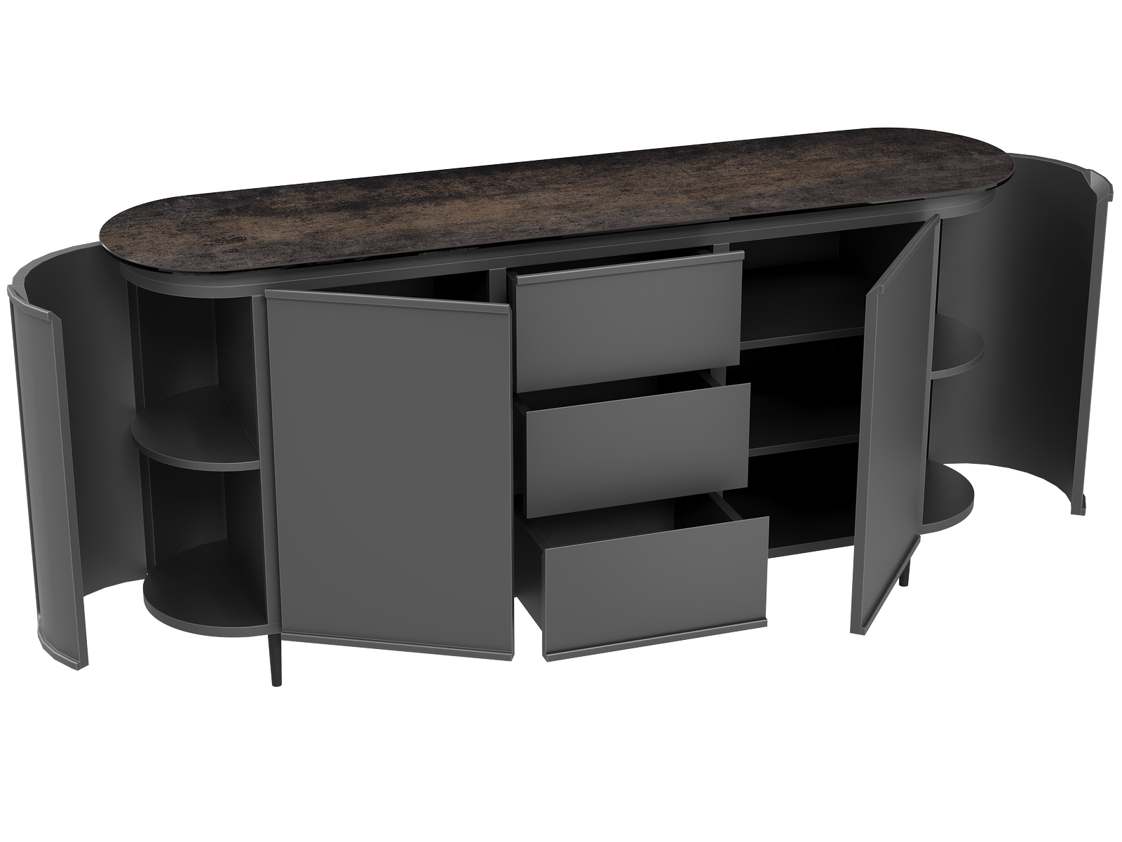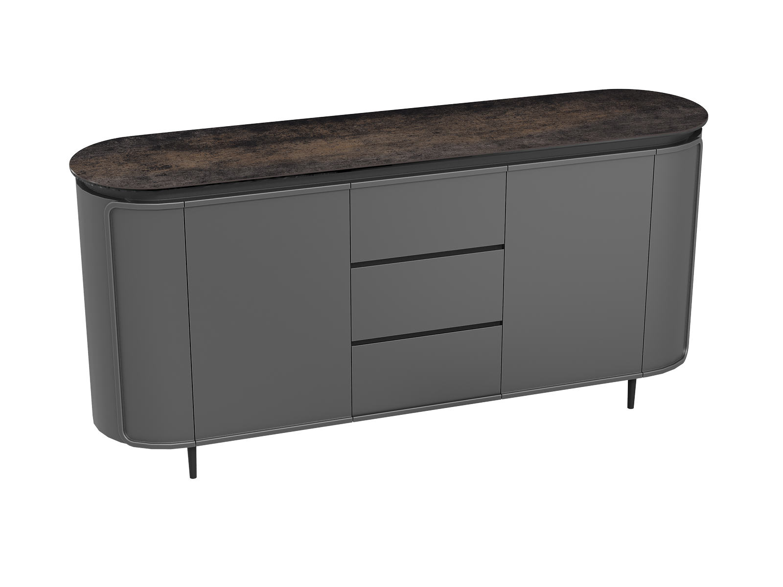 The OHIO sideboard combines the warmth of wood with the elegance of ceramic for a refined and functional style. It offers generous storage capacity thanks to its integrated shelves and drawers. Its top, available in ten ceramic finishes, blends harmoniously with any interior. Offered in two sizes (130 or 170 cm), the OHIO sideboard embodies a perfect balance between modernity and authenticity.