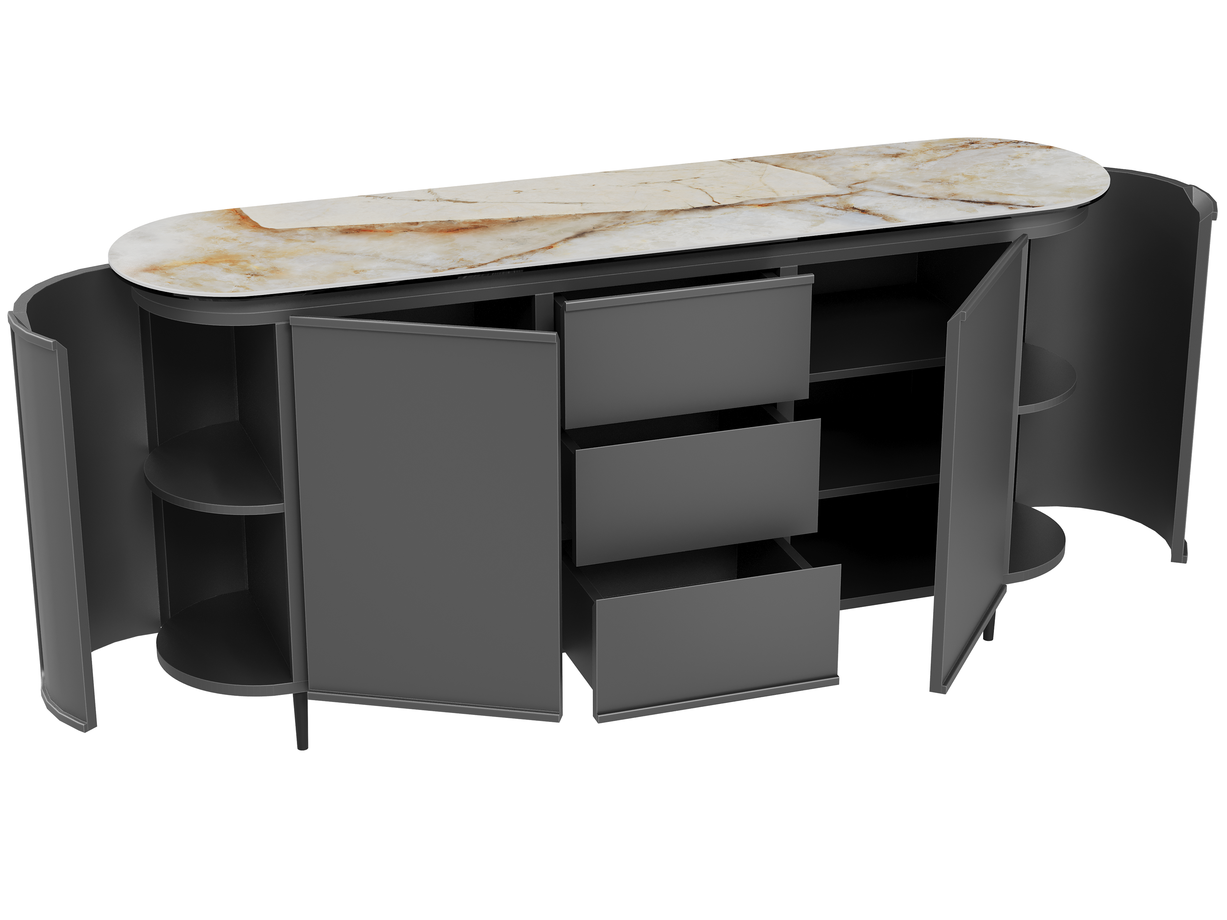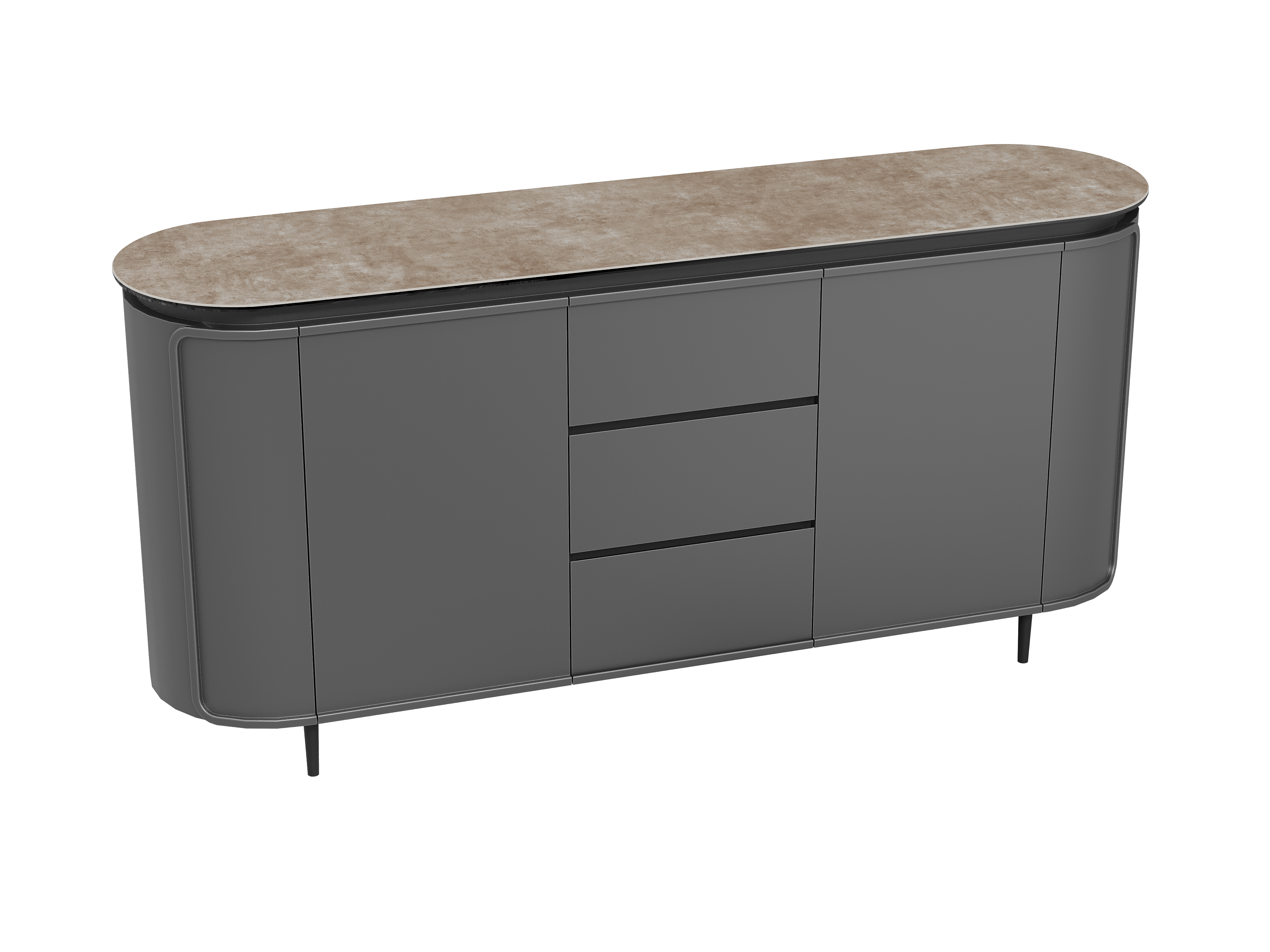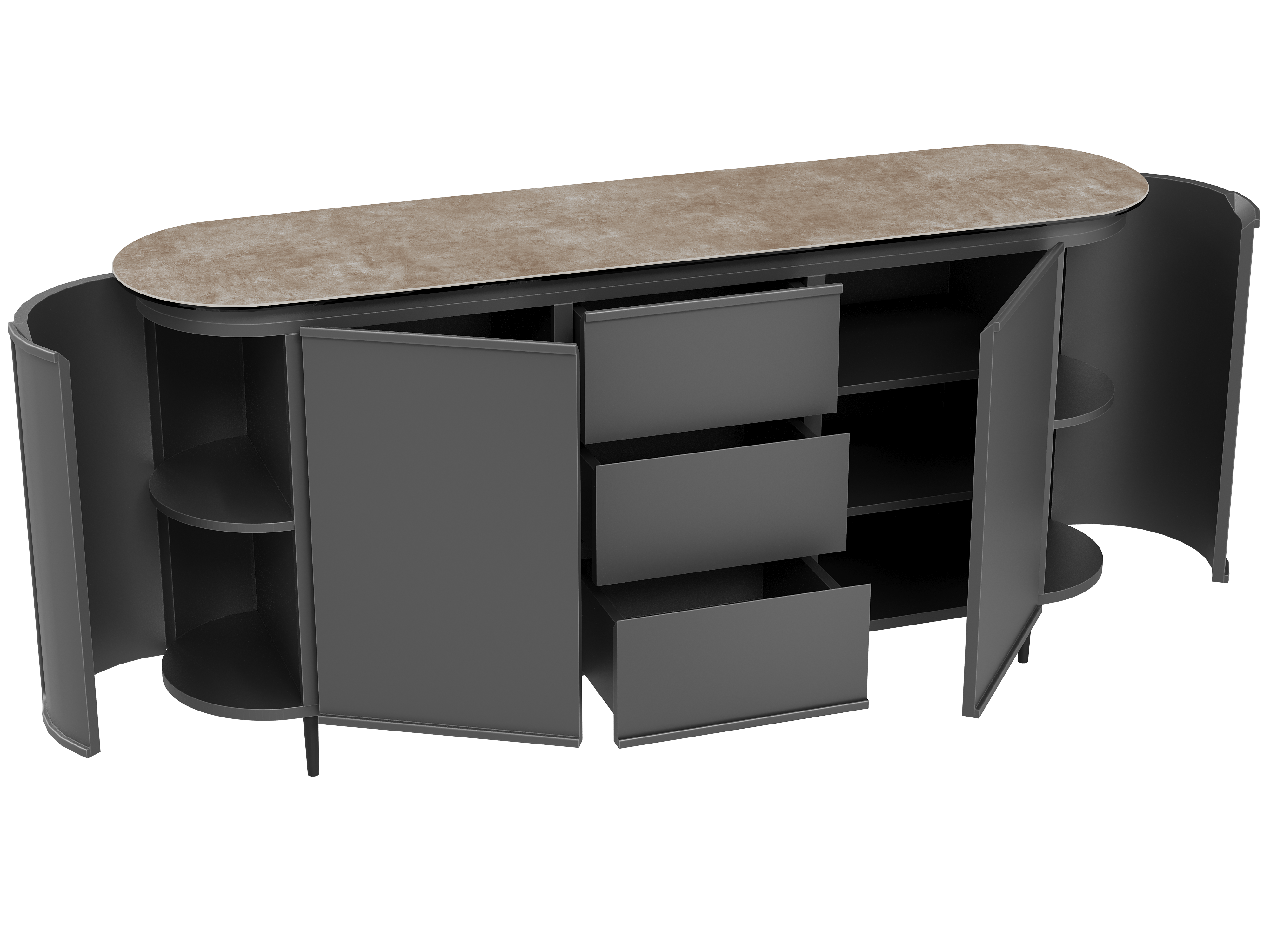 The OHIO sideboard combines the warmth of wood with the elegance of ceramic for a refined and functional style. It offers generous storage capacity thanks to its integrated shelves and drawers. Its top, available in ten ceramic finishes, blends harmoniously with any interior. Offered in two sizes (130 or 170 cm), the OHIO sideboard embodies a perfect balance between modernity and authenticity.