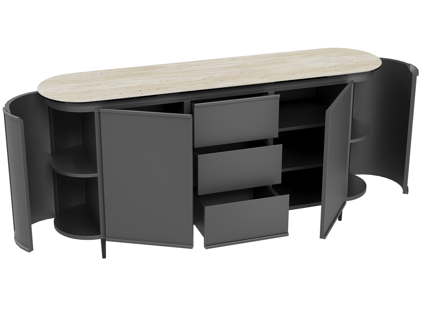 The OHIO sideboard combines the warmth of wood with the elegance of ceramic for a refined and functional style. It offers generous storage capacity thanks to its integrated shelves and drawers. Its top, available in ten ceramic finishes, blends harmoniously with any interior. Offered in two sizes (130 or 170 cm), the OHIO sideboard embodies a perfect balance between modernity and authenticity.