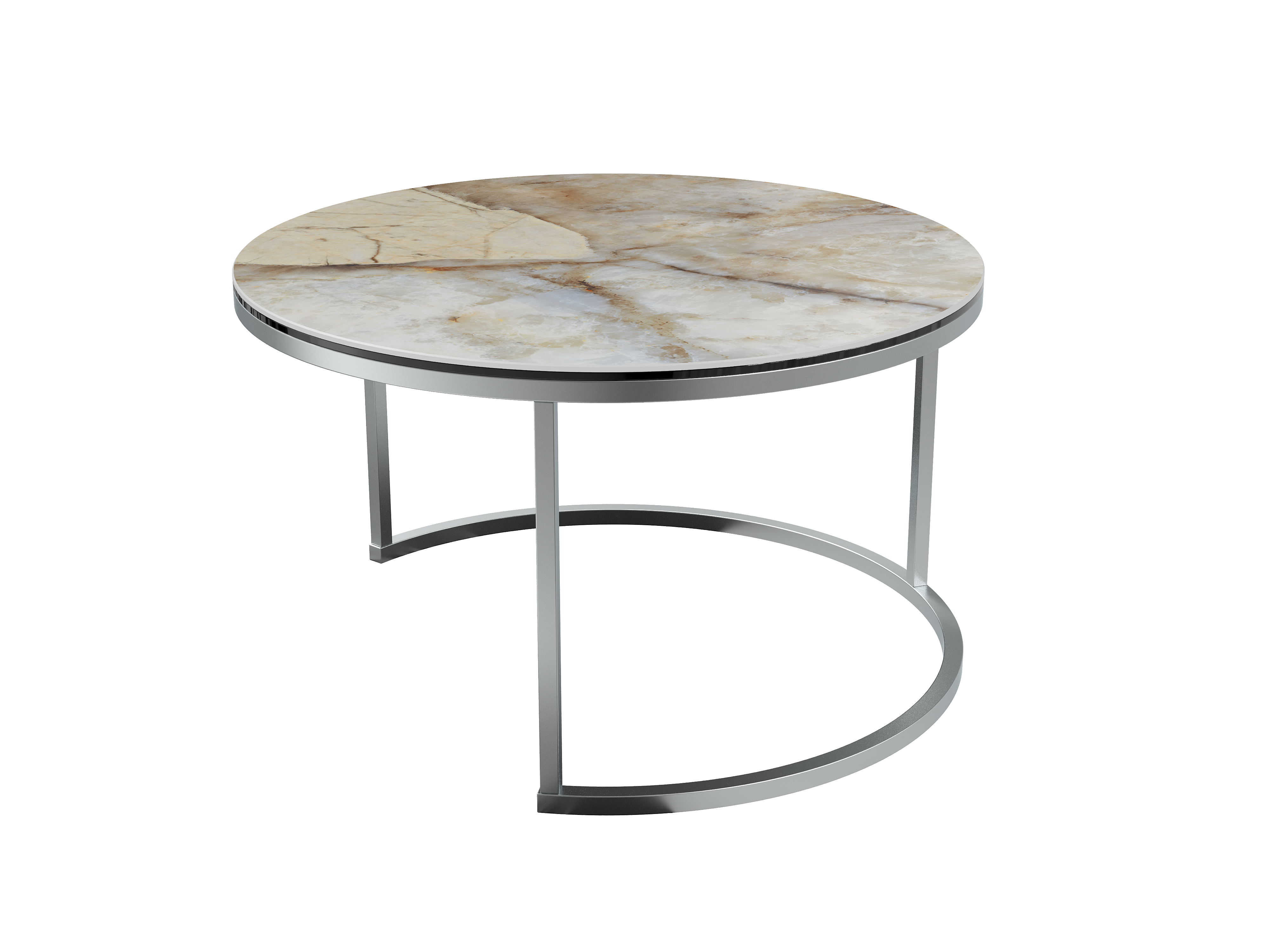 Afmetingen en details Nettogewicht : 15 Kg Kleur : Marmer Diameter : 75 cm Afmetingen : Ø 75 x 43 cm Hoogte : 43 cm Onderstel : gepolijst roestvrij staal Blad : 3 mm keramiek gekleefd op 6 mm glas INPI : 20215513