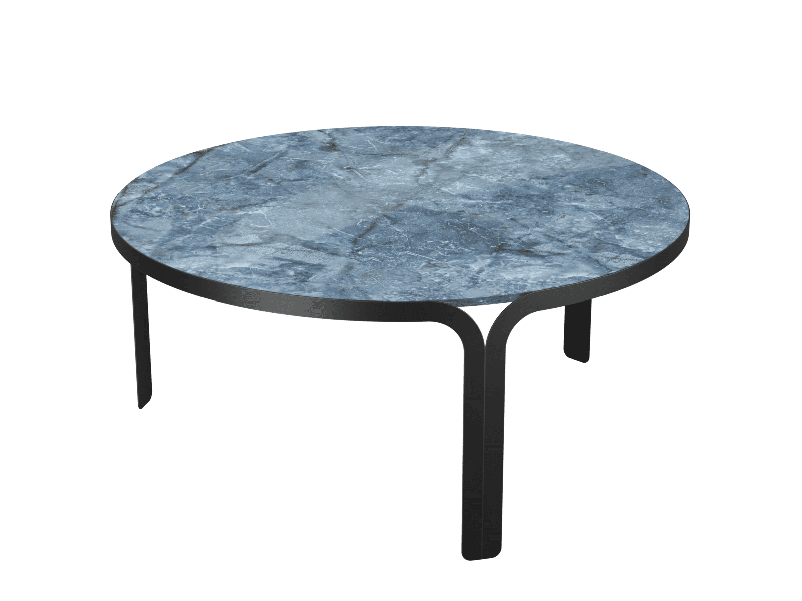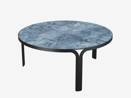 Add a touch of colour to your living room thanks to the Madura coffee table and its blue Onyx marble ceramic. The luminous plate is 90 cm in diameter. The ceramic used for the plate is 11 mm thick fullbody. The matt black lacquered steel material circles the plate and is also used for the base to give a refined and elegant look to the whole. The Madura coffee table is 40 cm in height which allows it to look good combined with any piece of furniture in a living room.