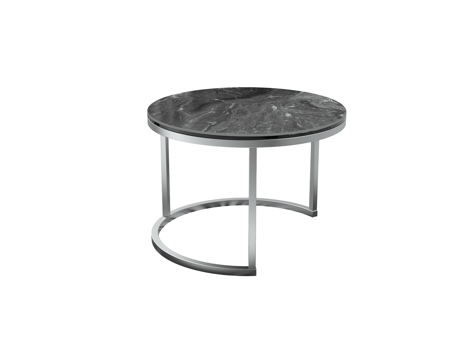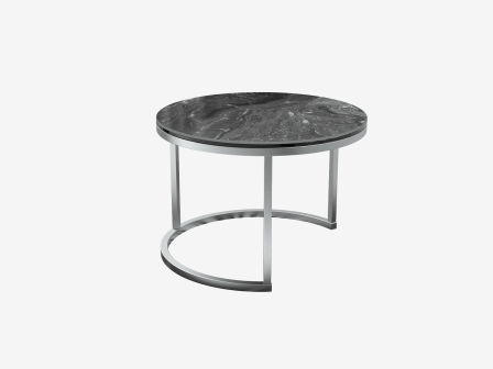 Afmetingen en details Nettogewicht : 8,3 Kg Kleur : Eramosa Diameter : 55 cm Afmetingen : Ø 55 x 38 cm Hoogte : 38 cm Onderstel : gepolijst roestvrij staal Blad : 6 mm keramiek gekleefd op 6 mm glas INPI : 20215513
